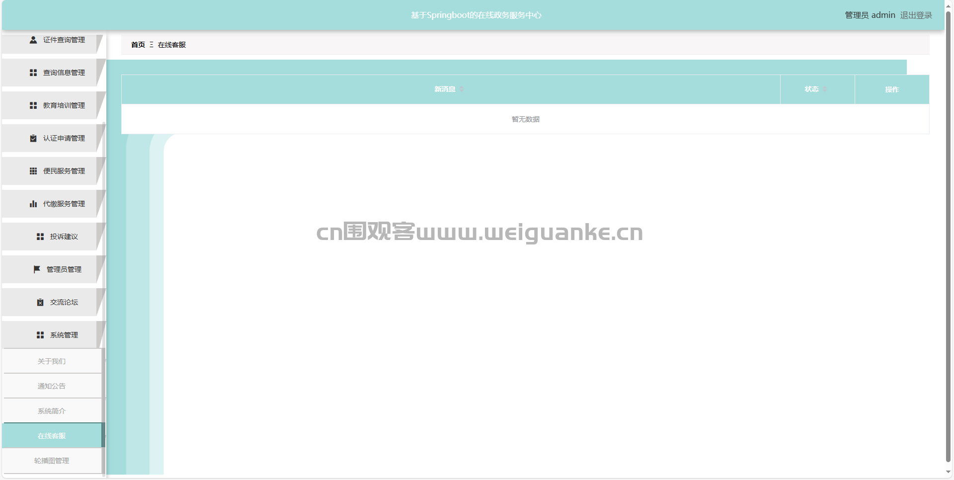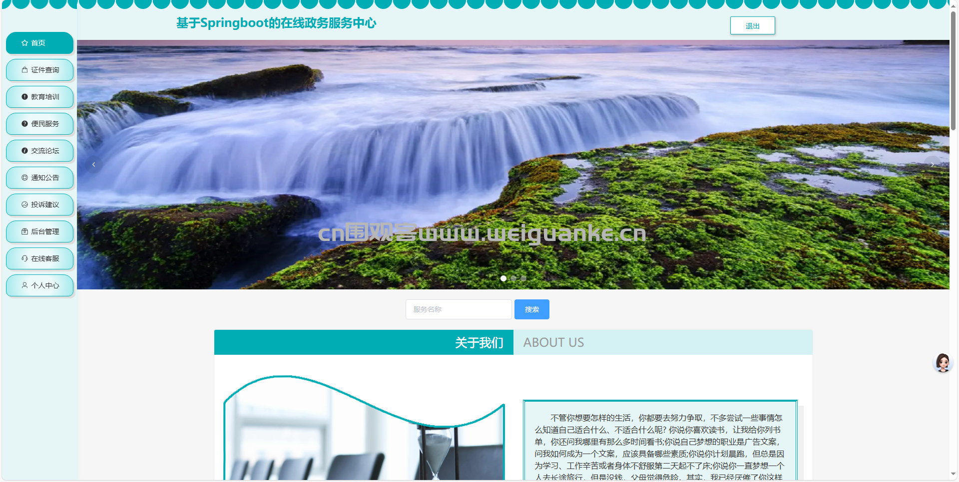 基于springboot+vue的在线政务服务中心。通过springboot,vue框架进行开发