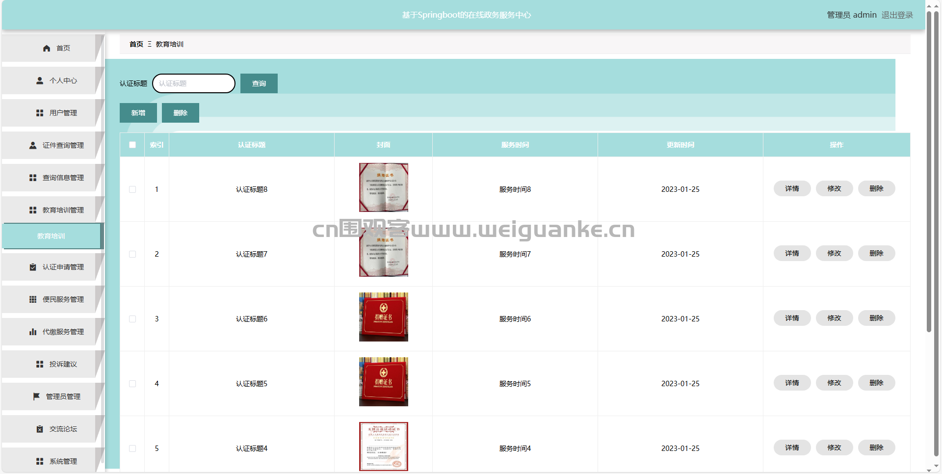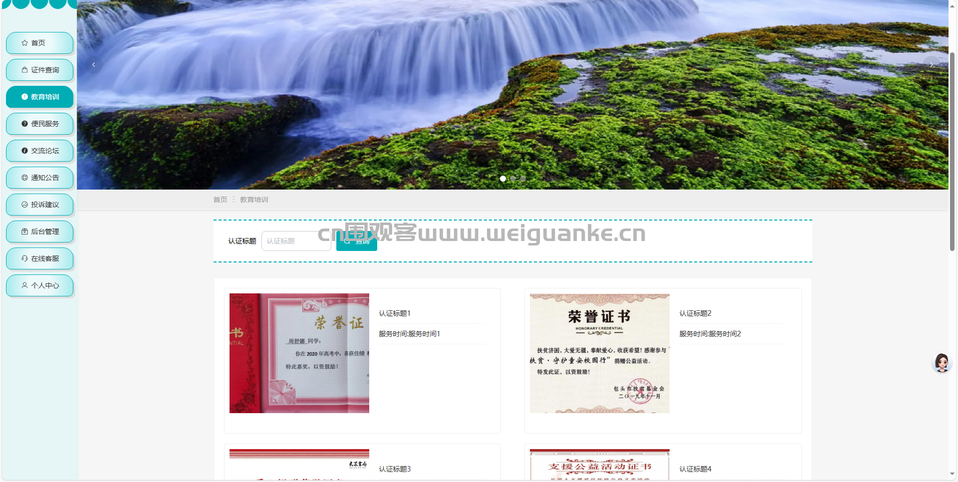 教育培训管理:发布课程、审核机构、统计报名与学习数据。