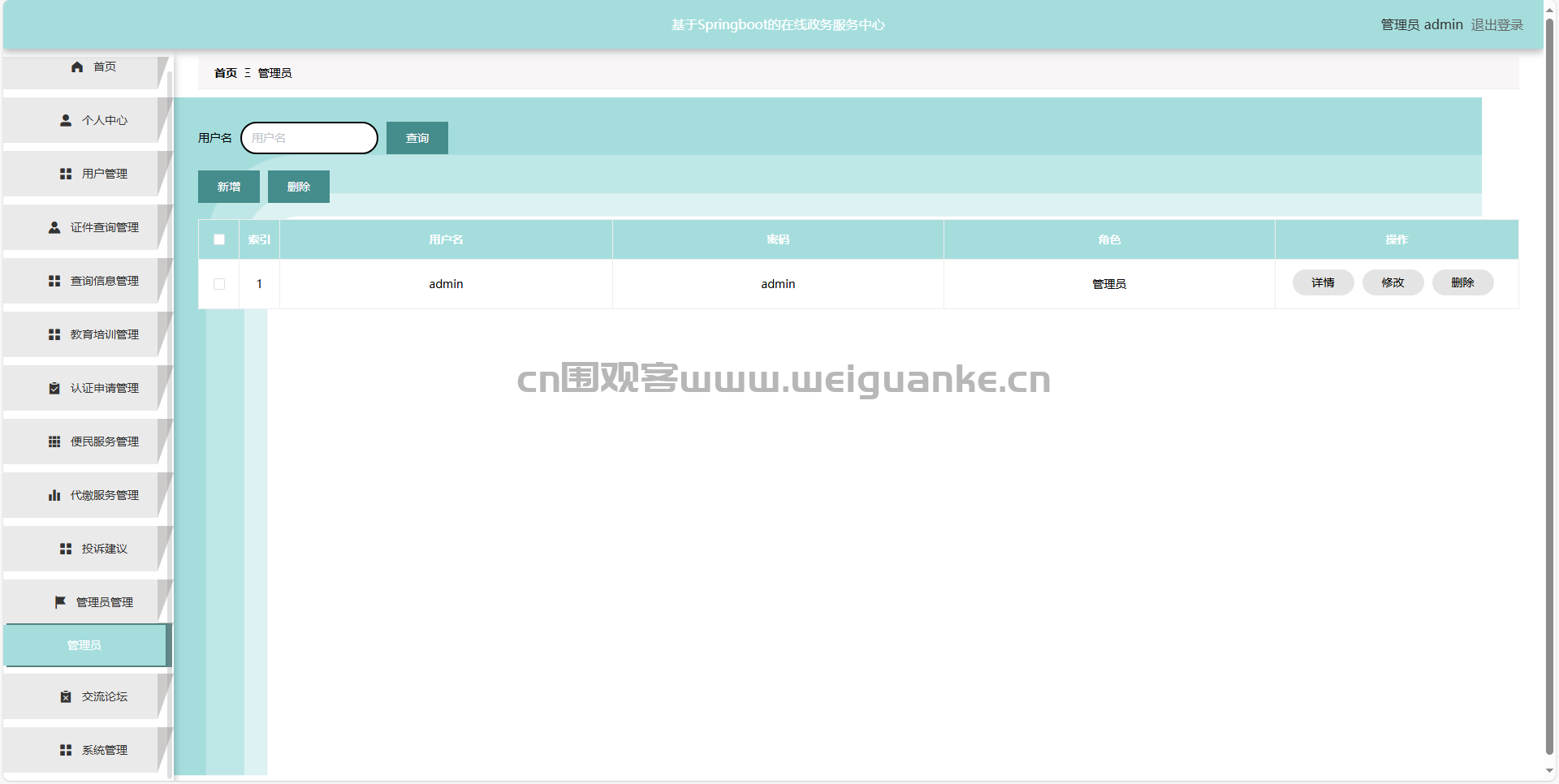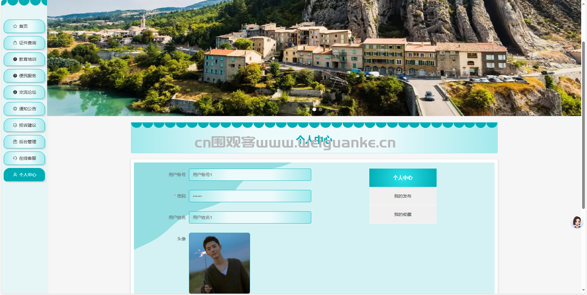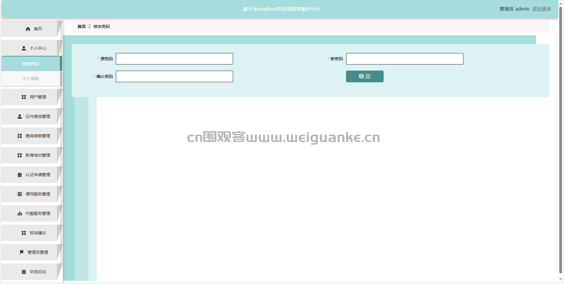 个人中心:管理员个人信息与密码的一站式维护入口。