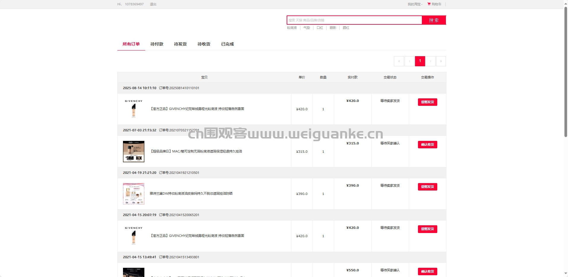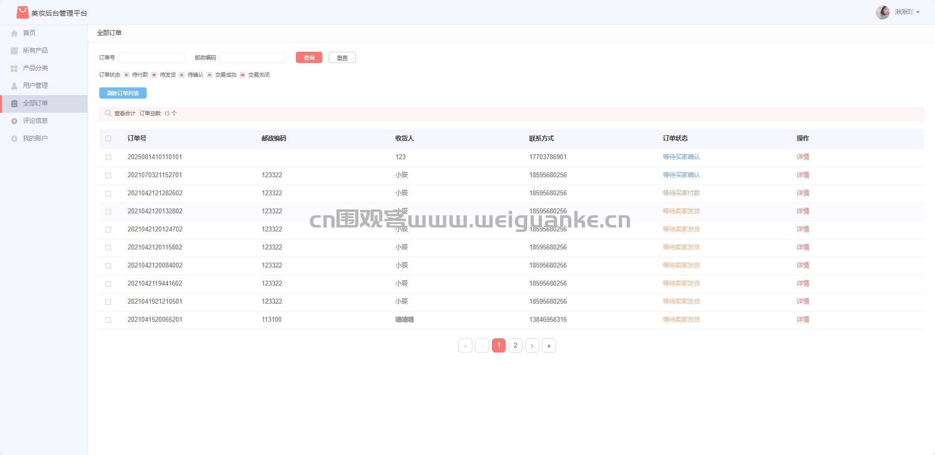 全部订单 :集中展示所有订单,方便管理员或用户查询、统计和管理订单。