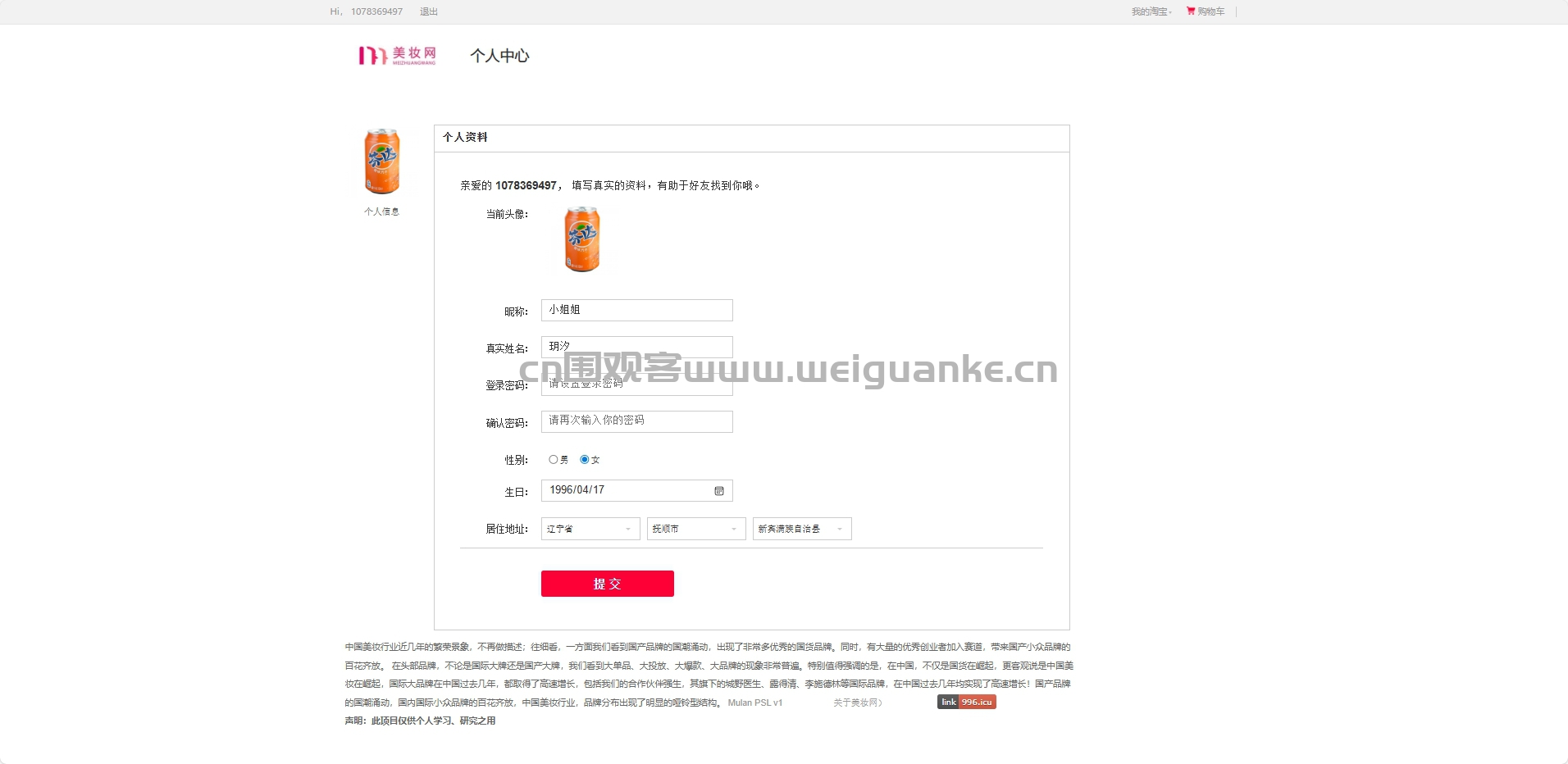 我的账户 :用户专属空间,可查看个人信息、订单记录并进行账户设置。