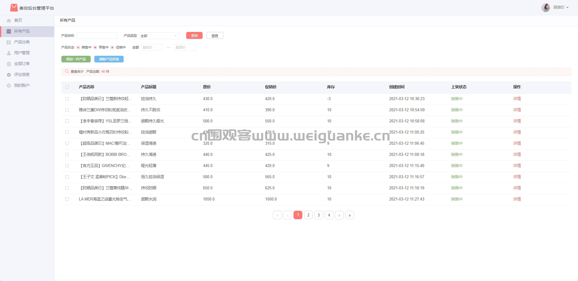 所有产品 :展示平台上的全部产品列表,方便用户浏览和搜索商品。