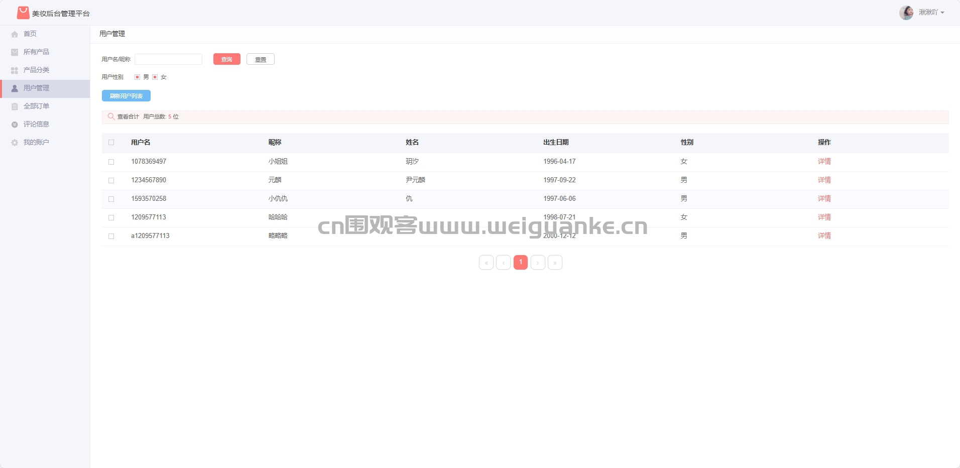 用户管理 :集中管理用户信息、权限和角色,确保用户体系有序运行。