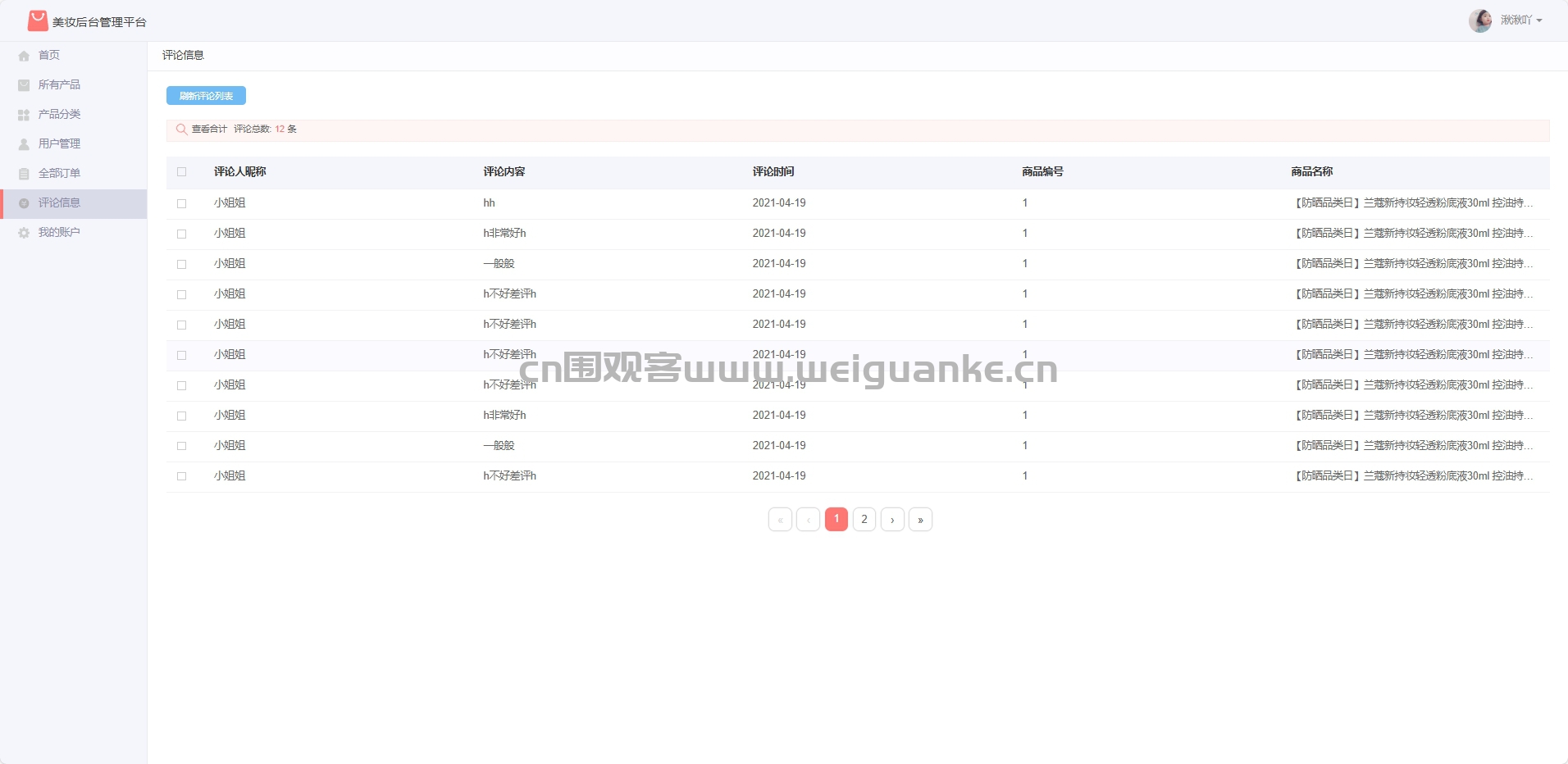 评论信息 :展示用户对产品或服务的评价和反馈,帮助了解用户满意度。