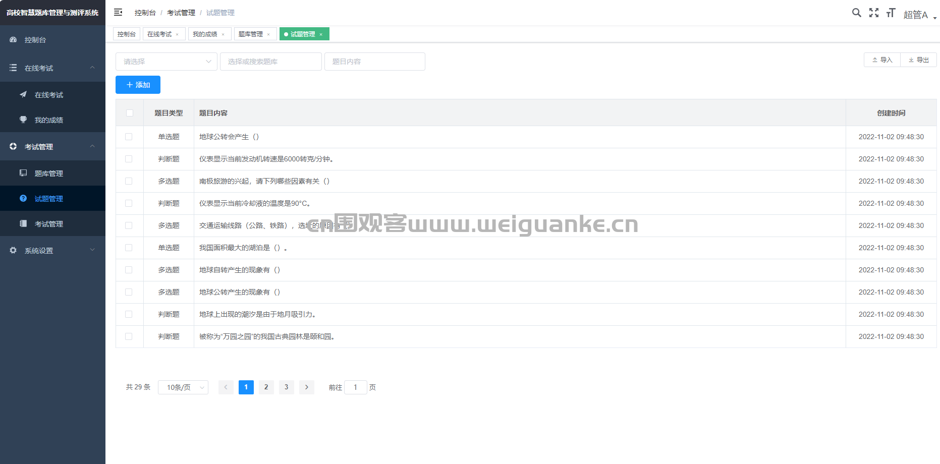 – 试题管理:管理试题,包括试题的分类、难度设置等,确保试题的质量。