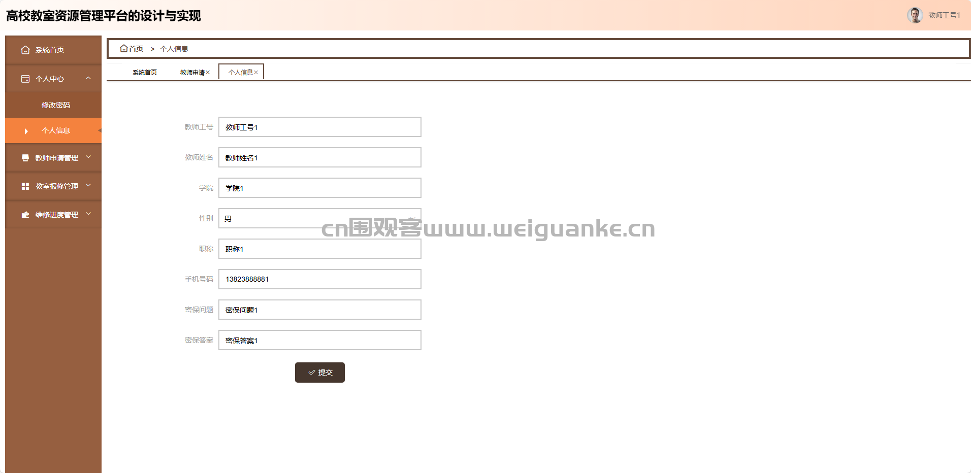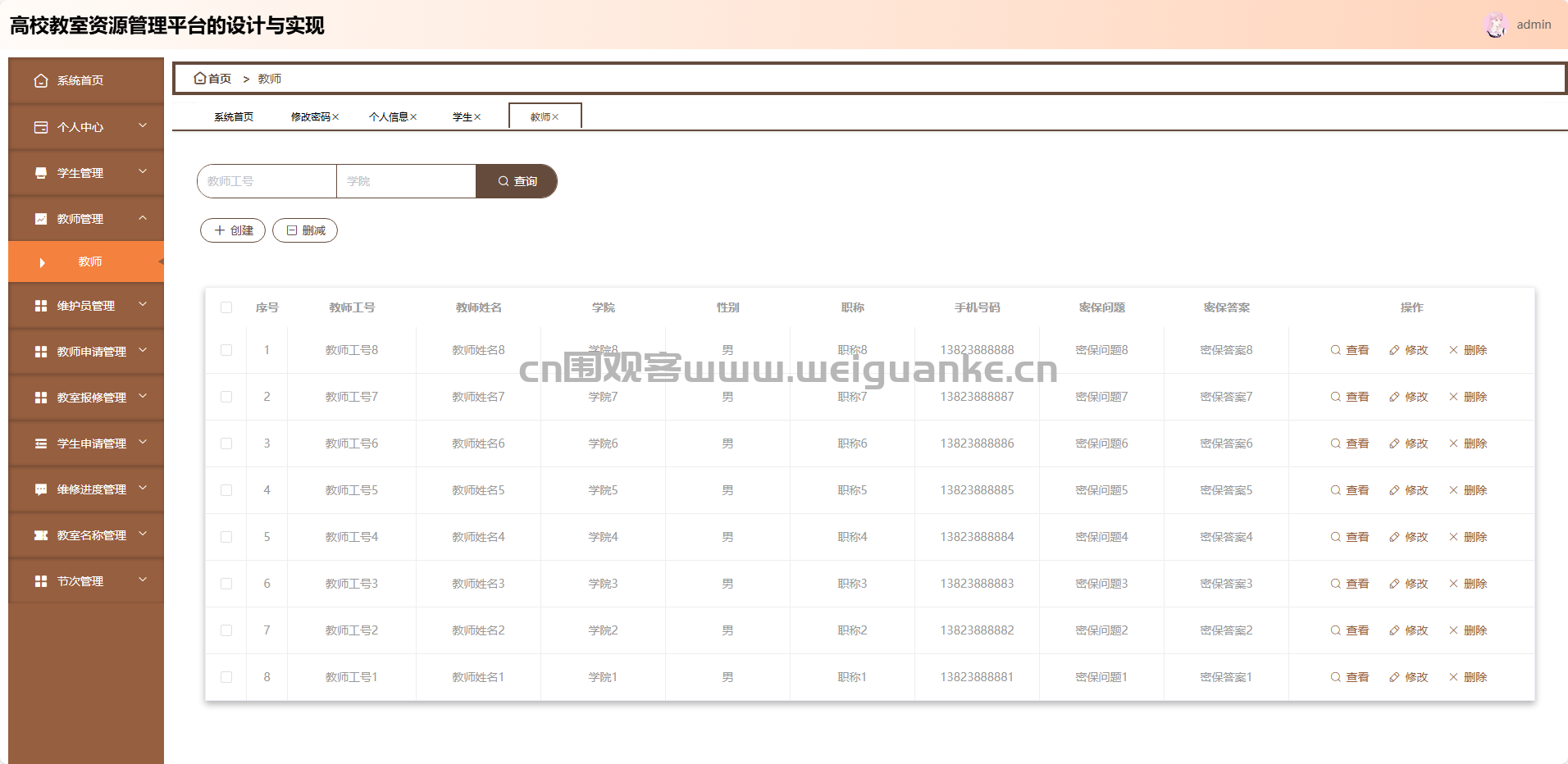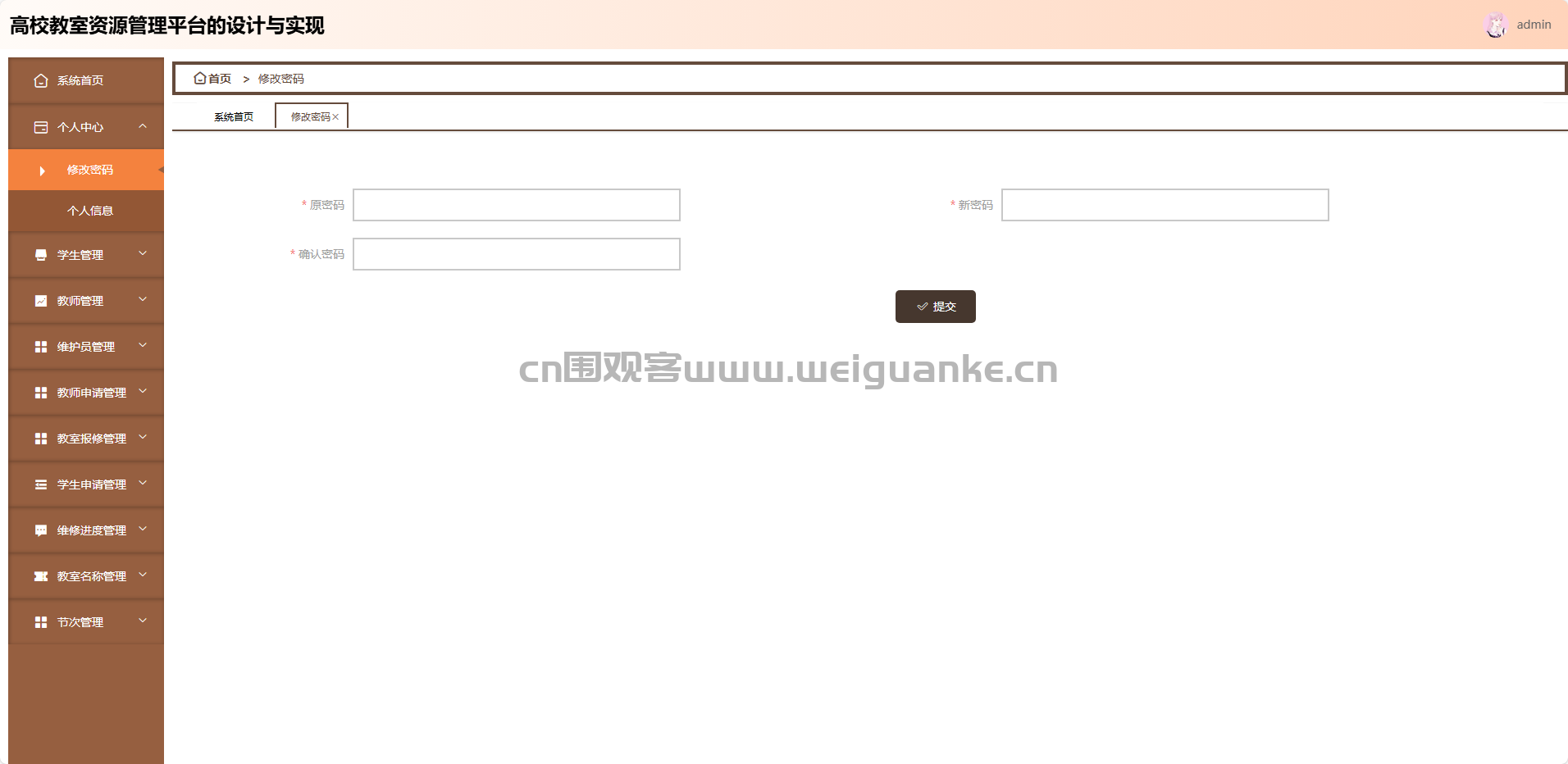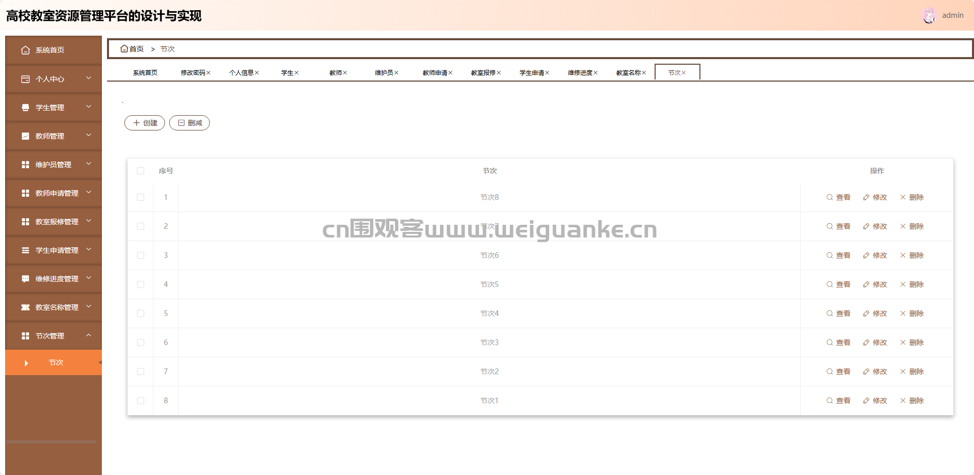 SpringBoot+Vue高校教室资源平台,师生在线申请教室、一键报修,维护员实时接单维修,管理员统一调度审核,实现教室资源与设备维修全流程数字化管理。