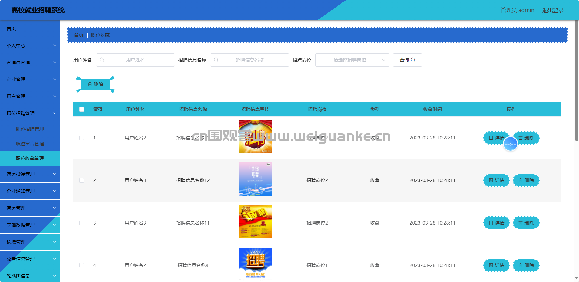 职位收藏:用户私人岗位收藏夹,一键保存心仪职位,支持分类管理与到期失效自动清理。