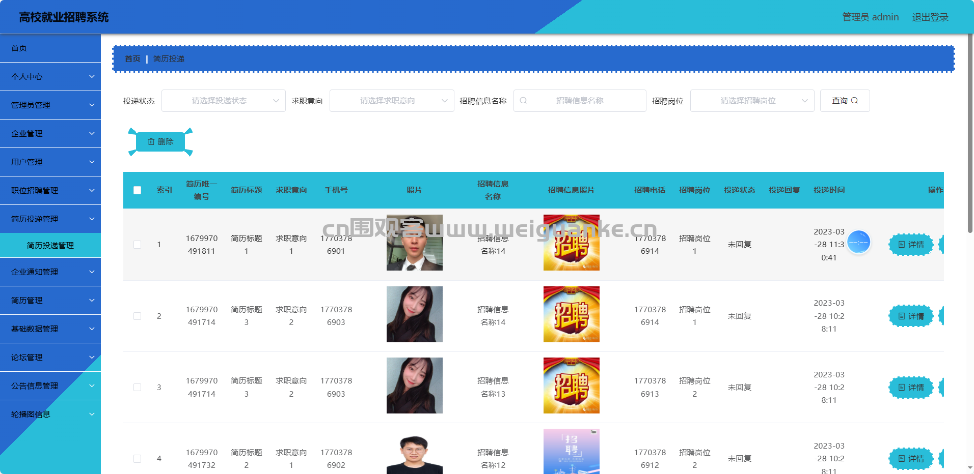 简历投递管理:追踪并调度求职者投递记录,支持状态回写、批量筛选与防作弊检测。