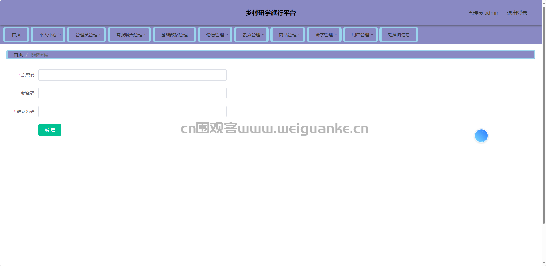 修改密码:旧码验证+新码二次确认,安全即时生效。