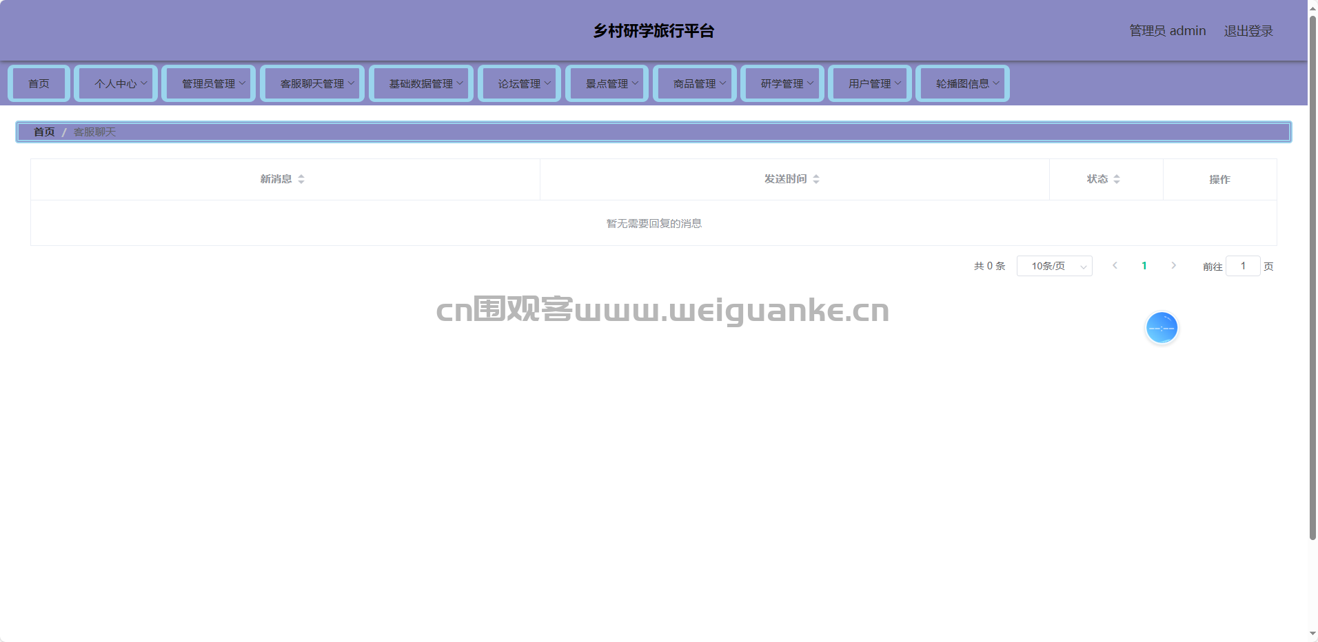 客服聊天管理:实时会话分配,话术库、快捷回复、满意度统计。