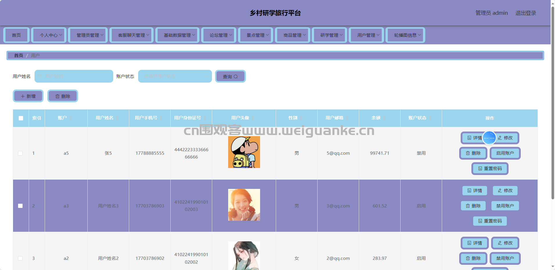 管理员管理:增删超管/子管,配权限、看日志、一键封禁。