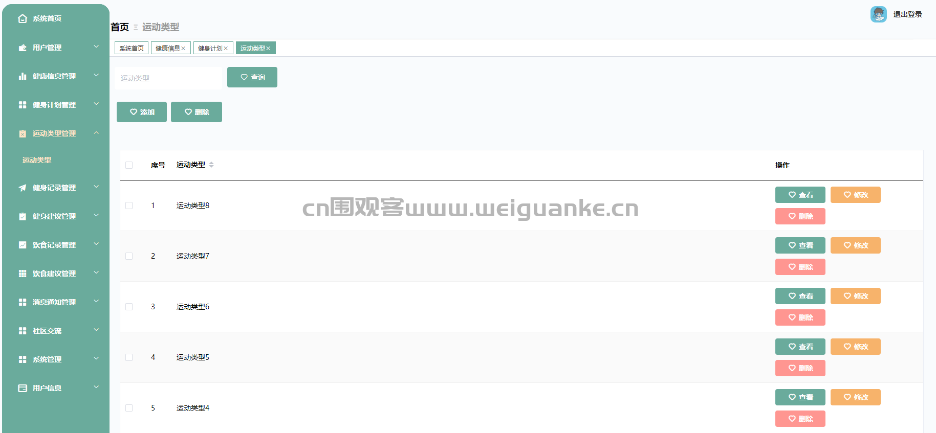 – 管理系统中包含的运动类型,包括运动的分类和描述。
