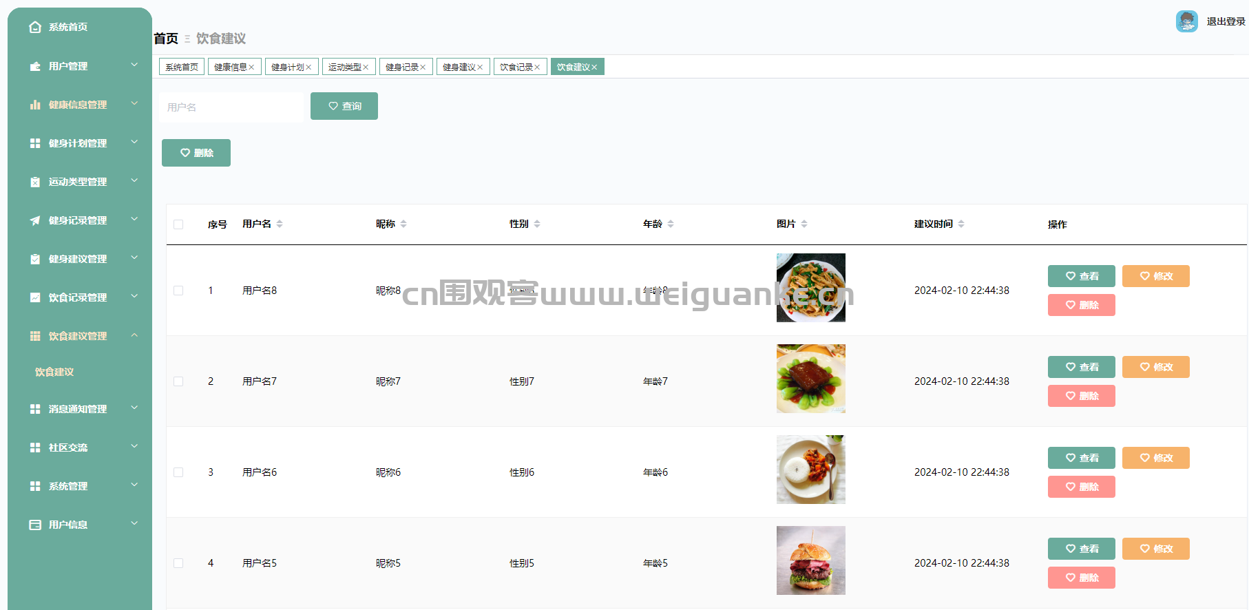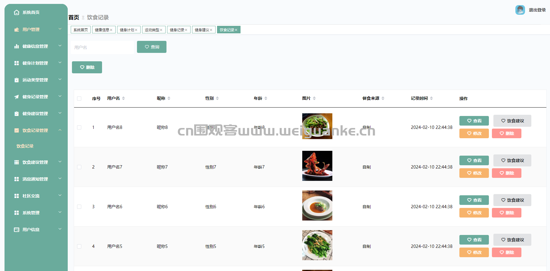 – 记录用户的饮食情况,包括饮食的录入、查询和分析。