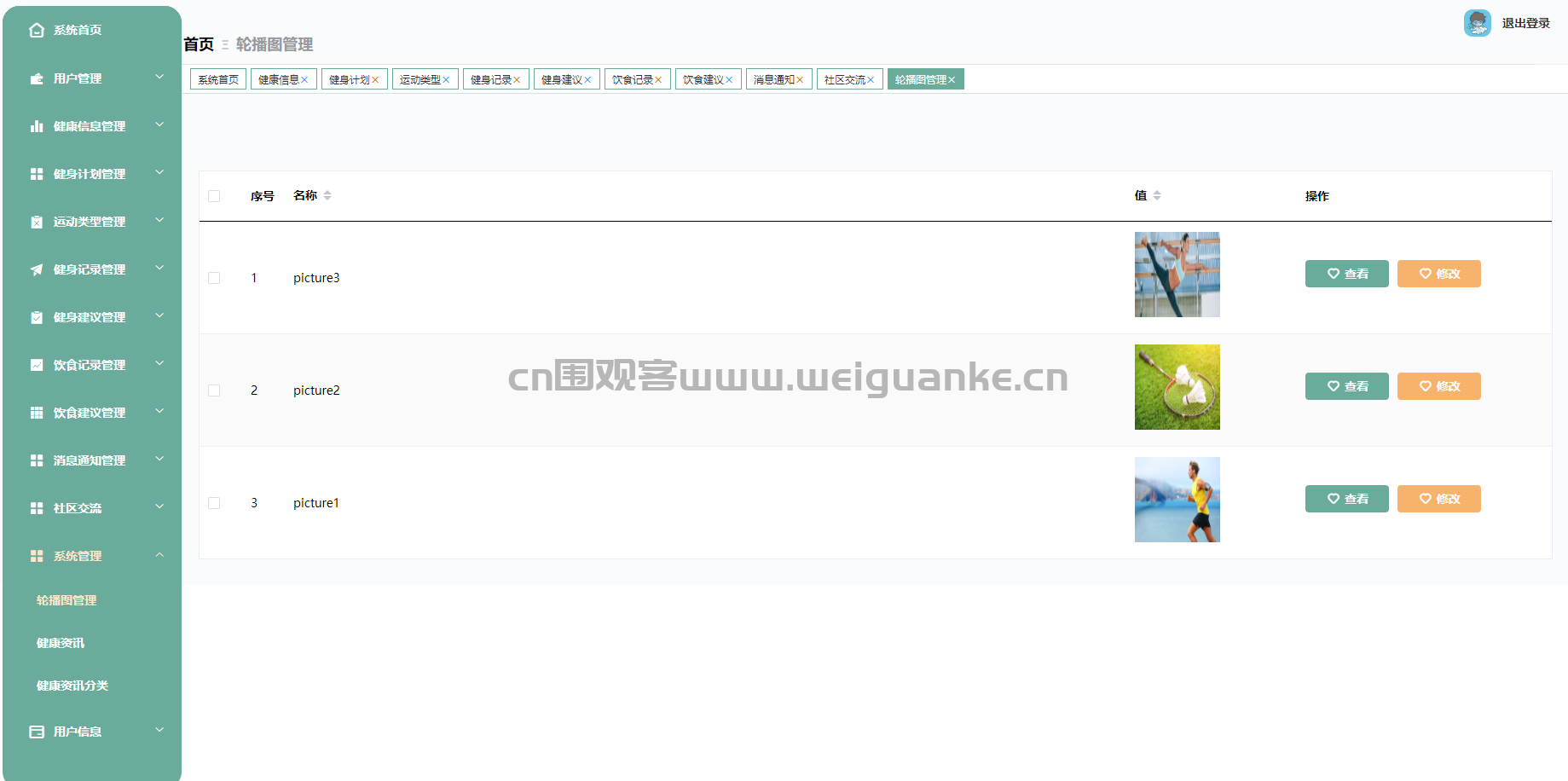 – 轮播图管理:管理系统首页的轮播图,包括图片的上传、编辑和删除。