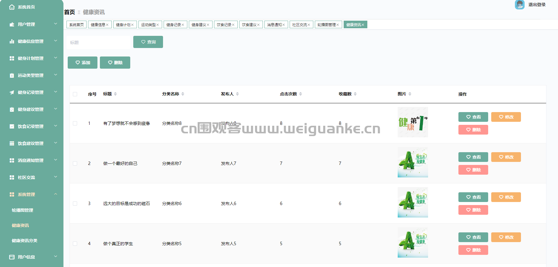 – 健康资讯分类:管理健康资讯的分类,方便用户浏览和查找。
