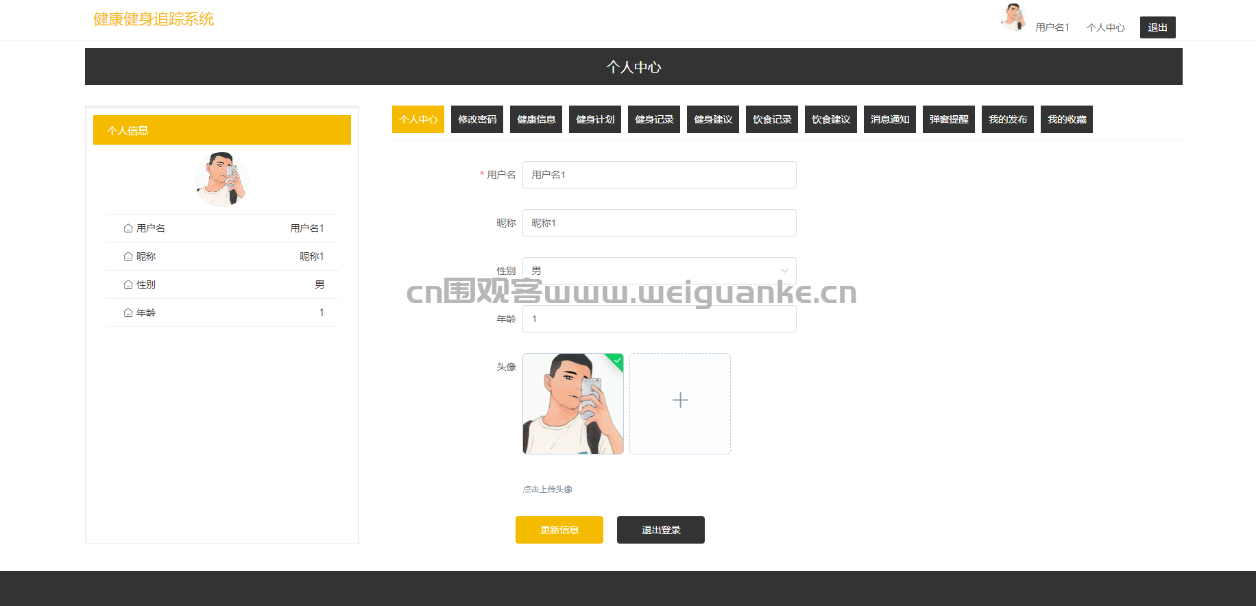 – 健康信息:用户可以查看和更新自己的健康信息。