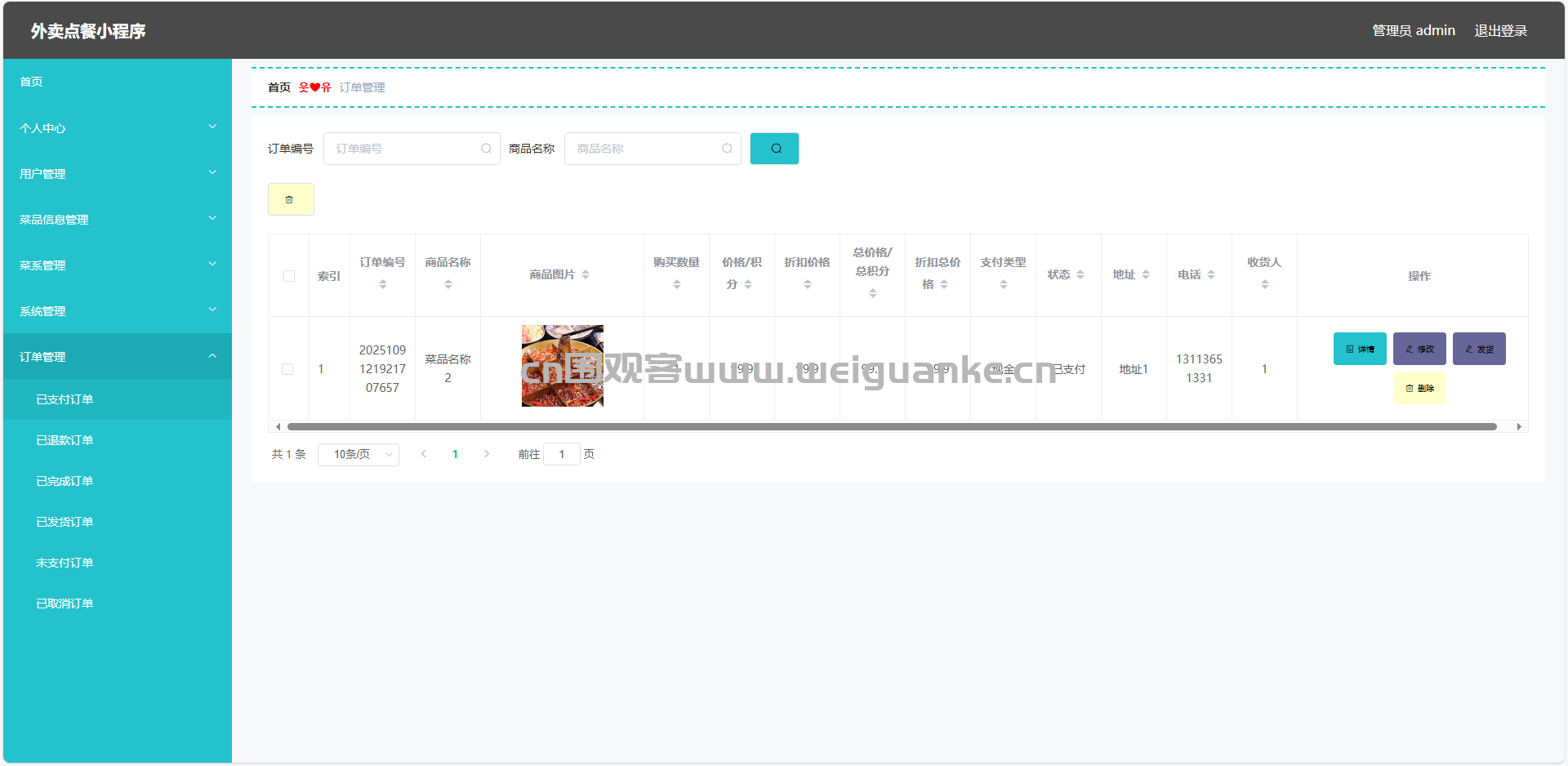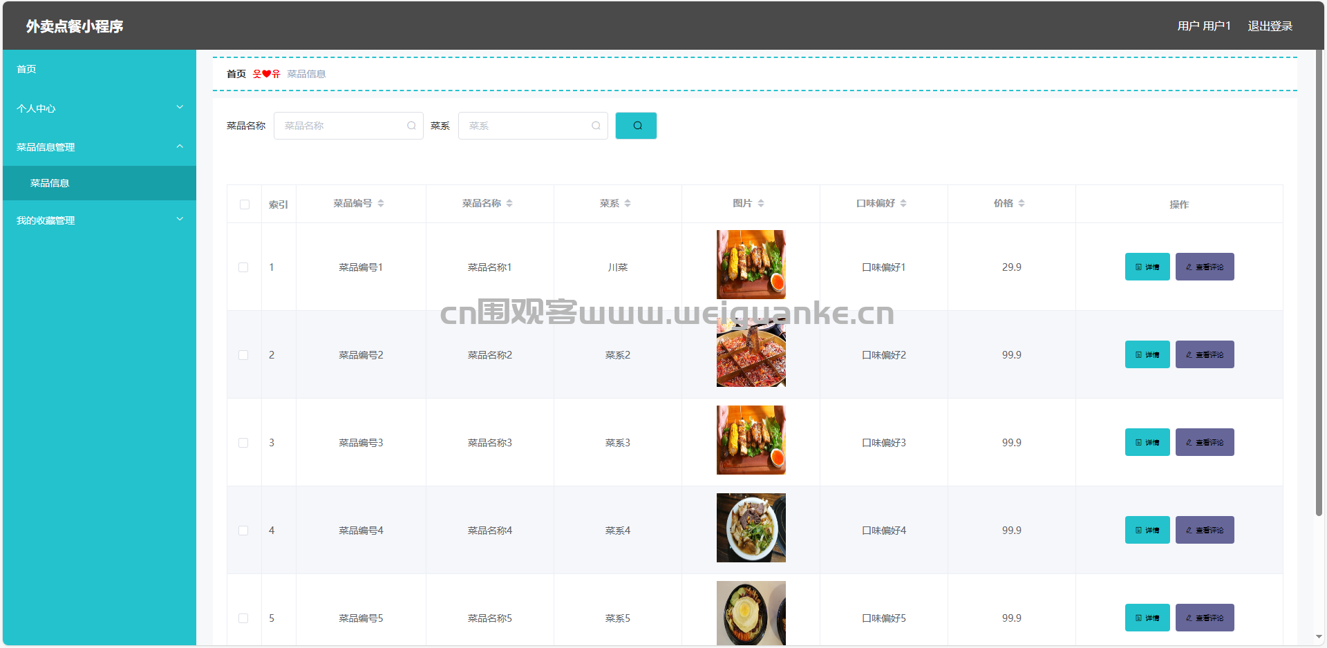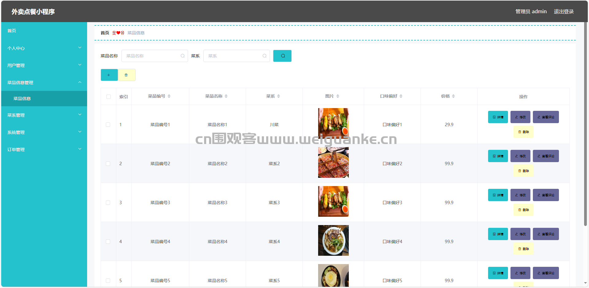 4.菜品管理:查看、添加、编辑、删除菜品信息和评论信息
