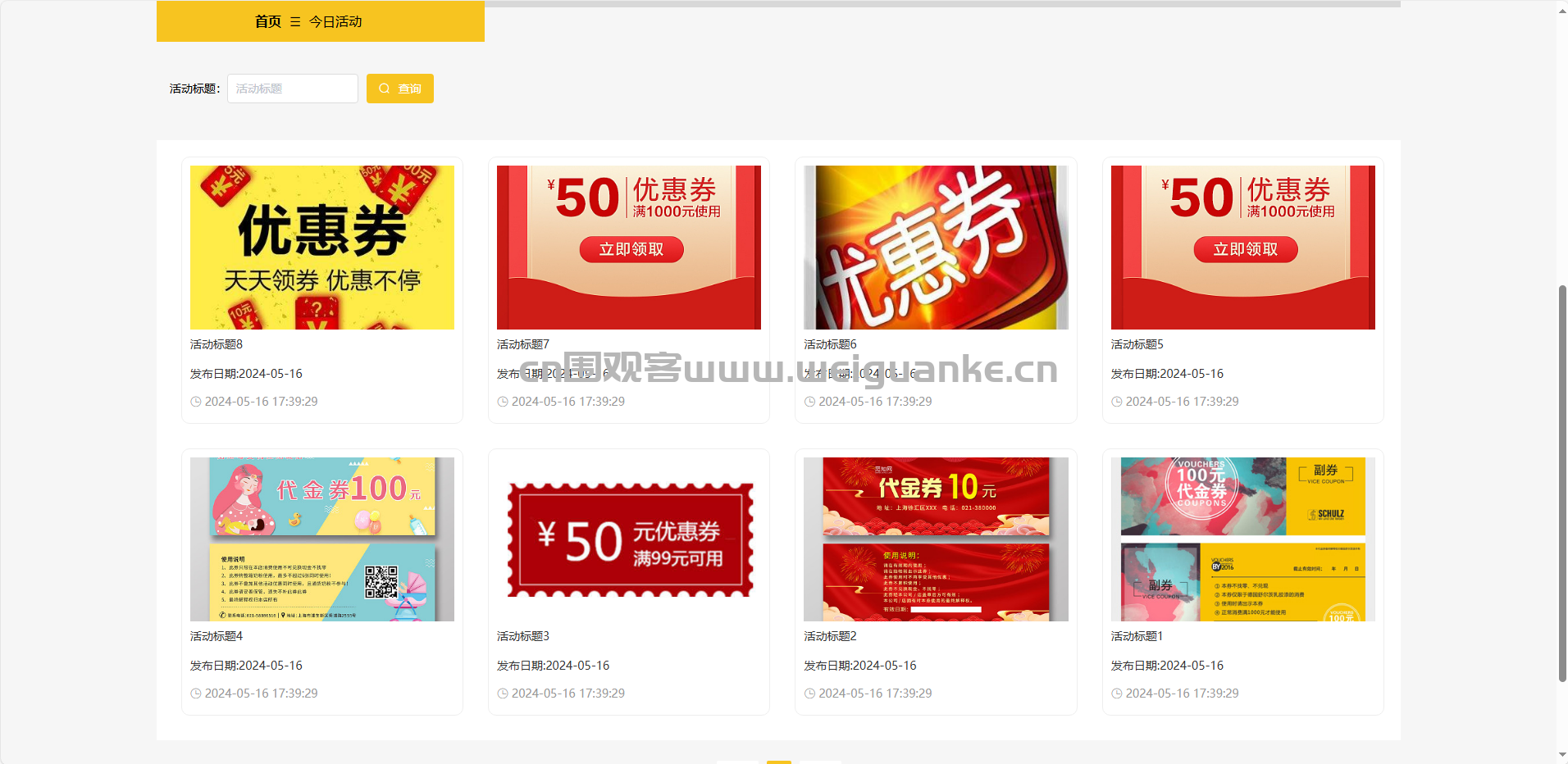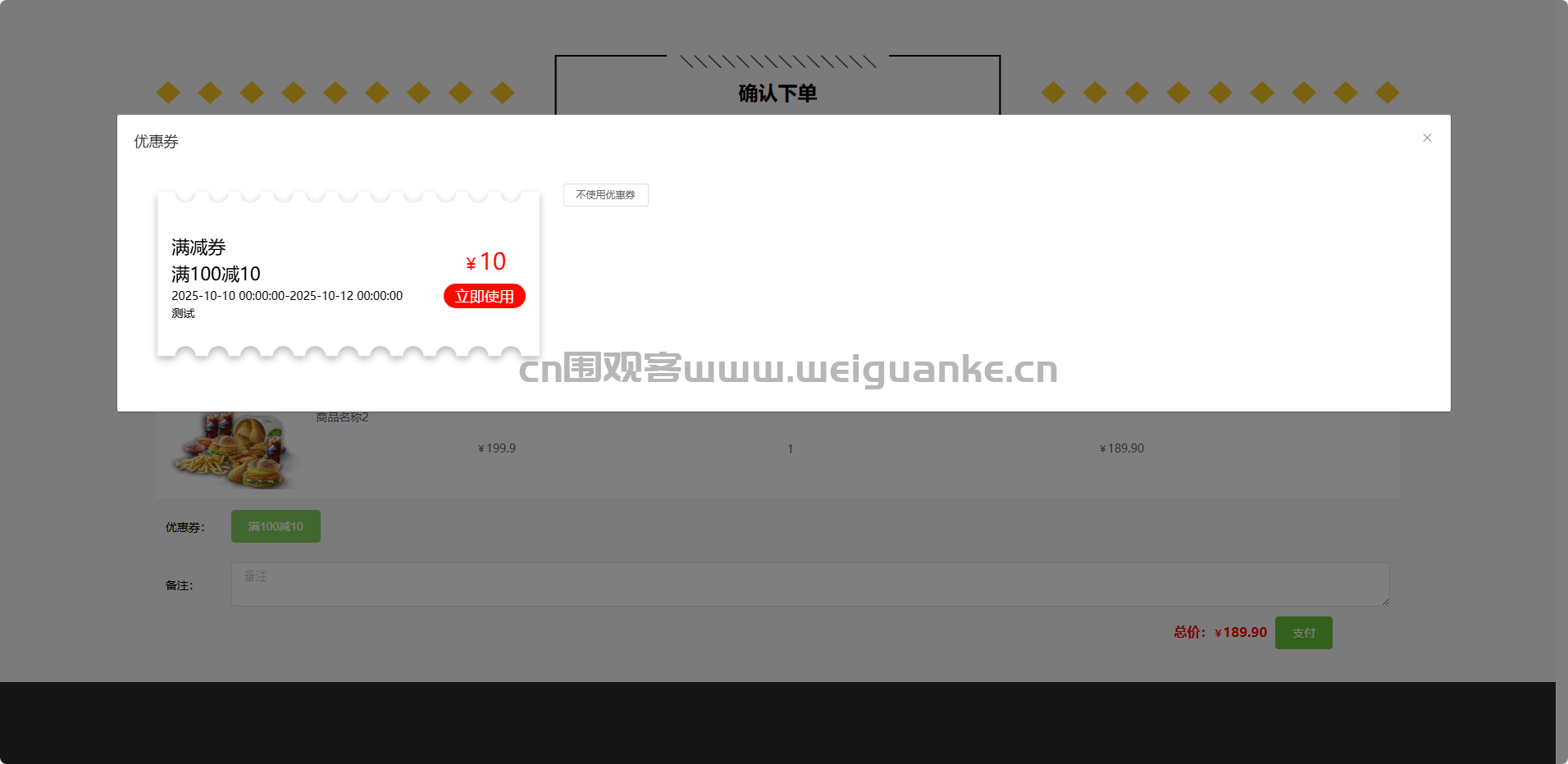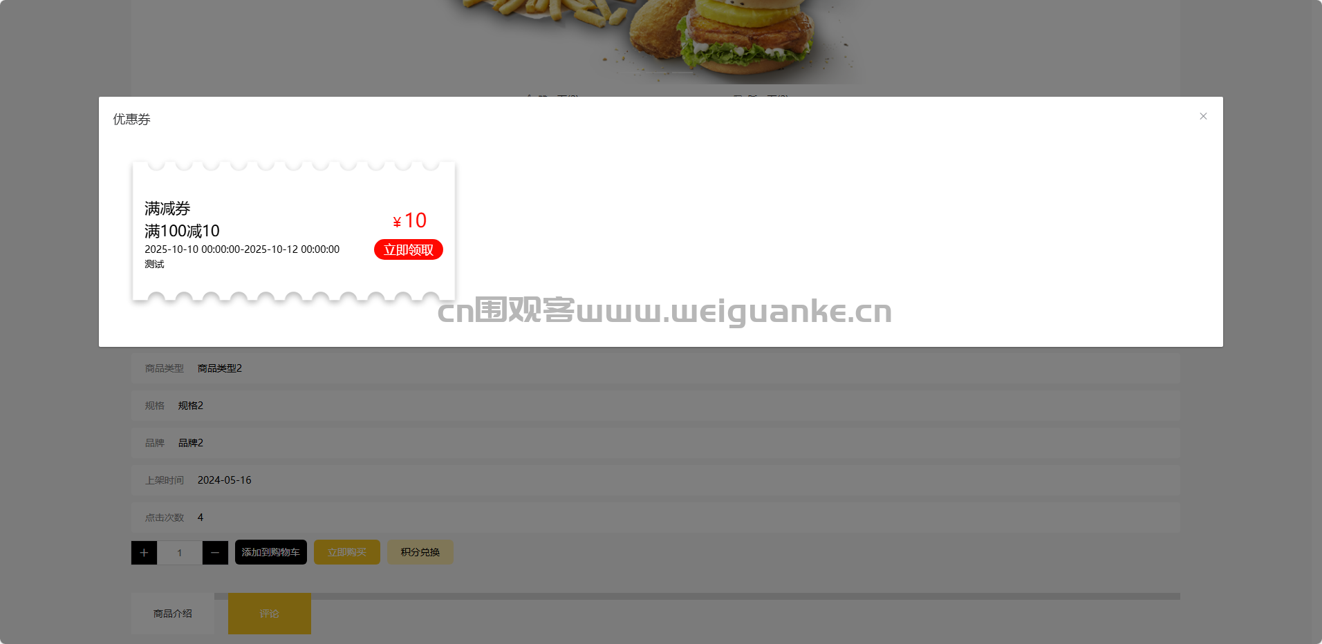 优惠券:创建、修改、删除、发放、查询优惠券。