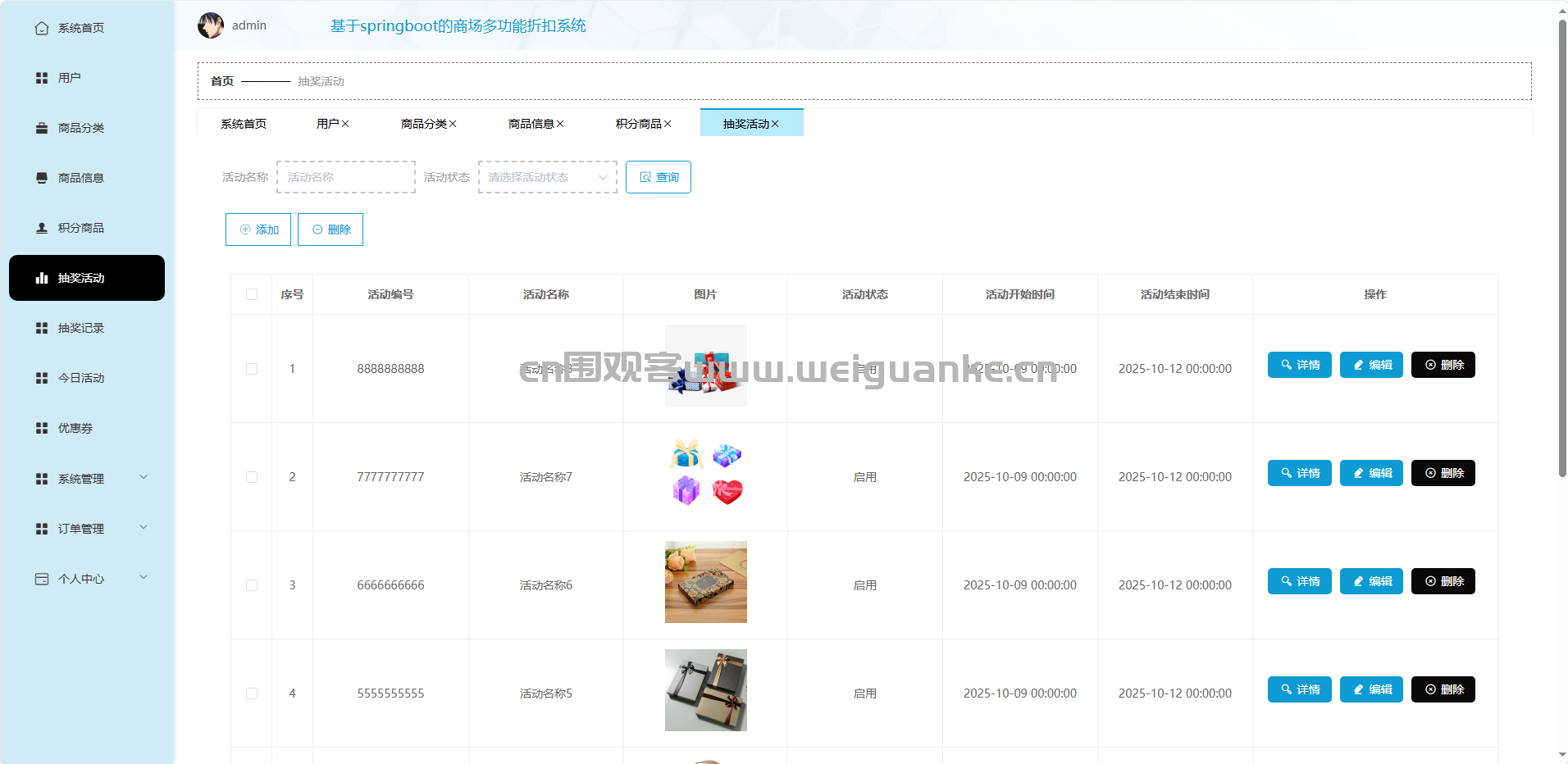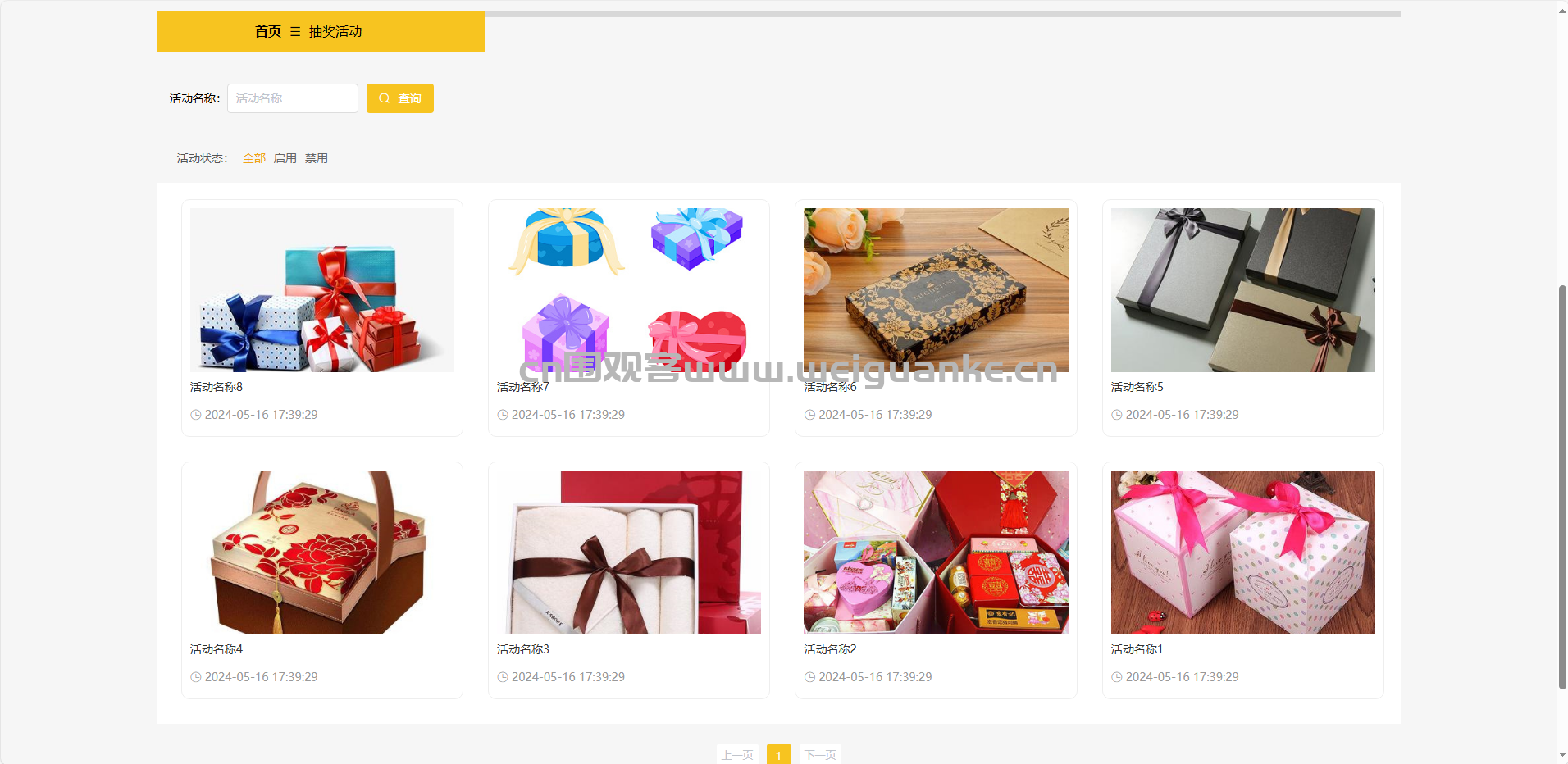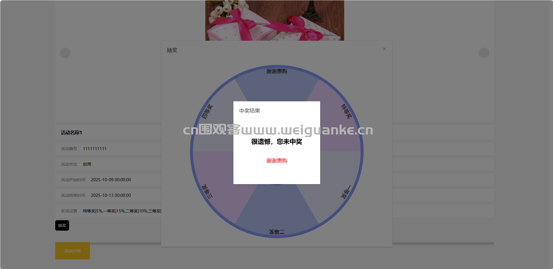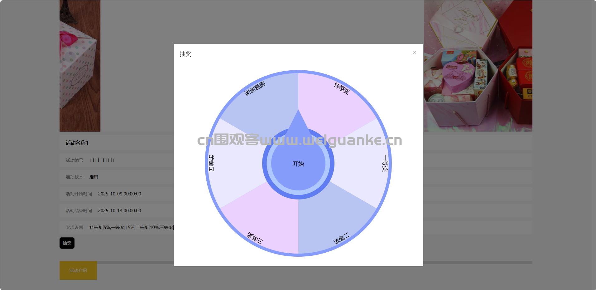 抽奖活动:新增、修改、删除、查询抽奖配置与奖品。