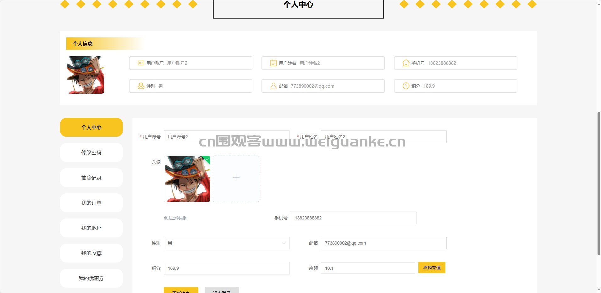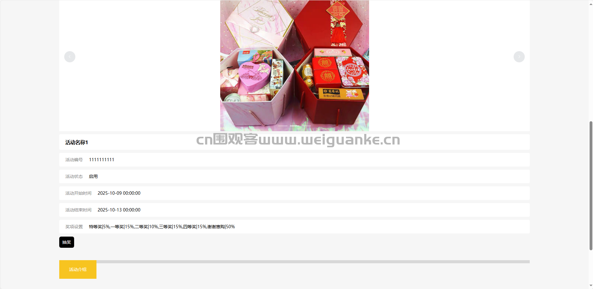抽奖活动:参与、查看实时抽奖剩余次数与奖品。