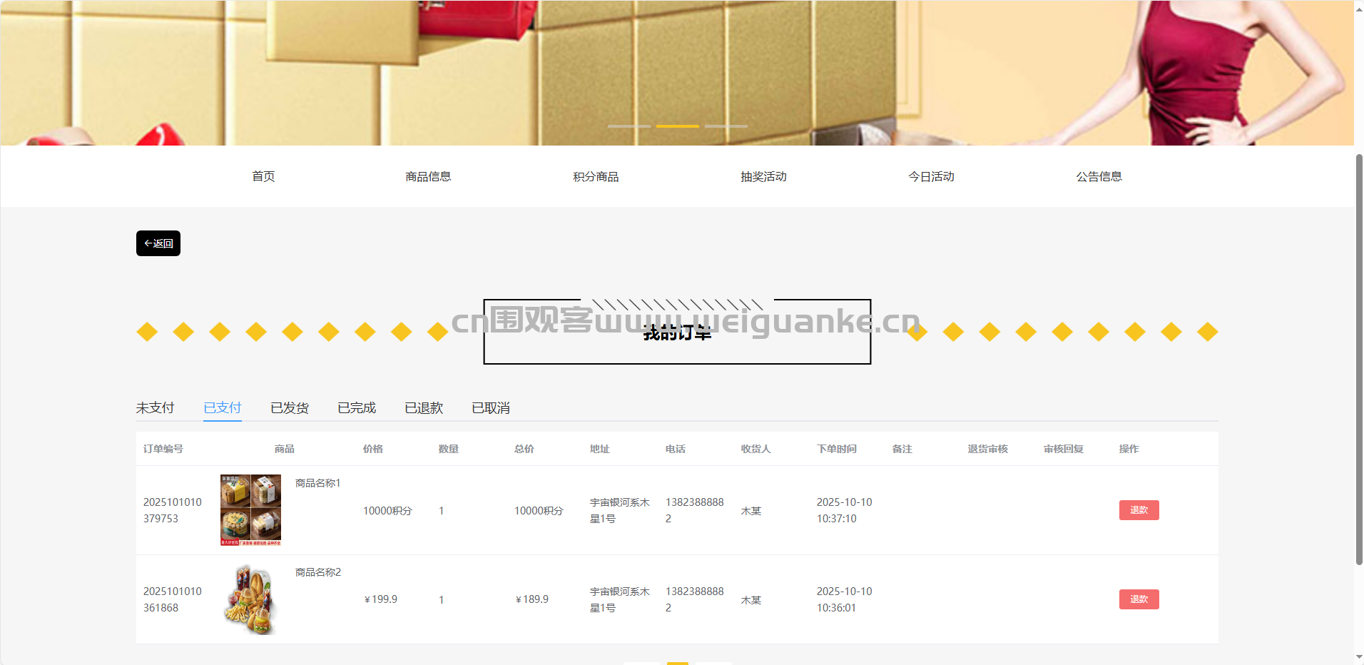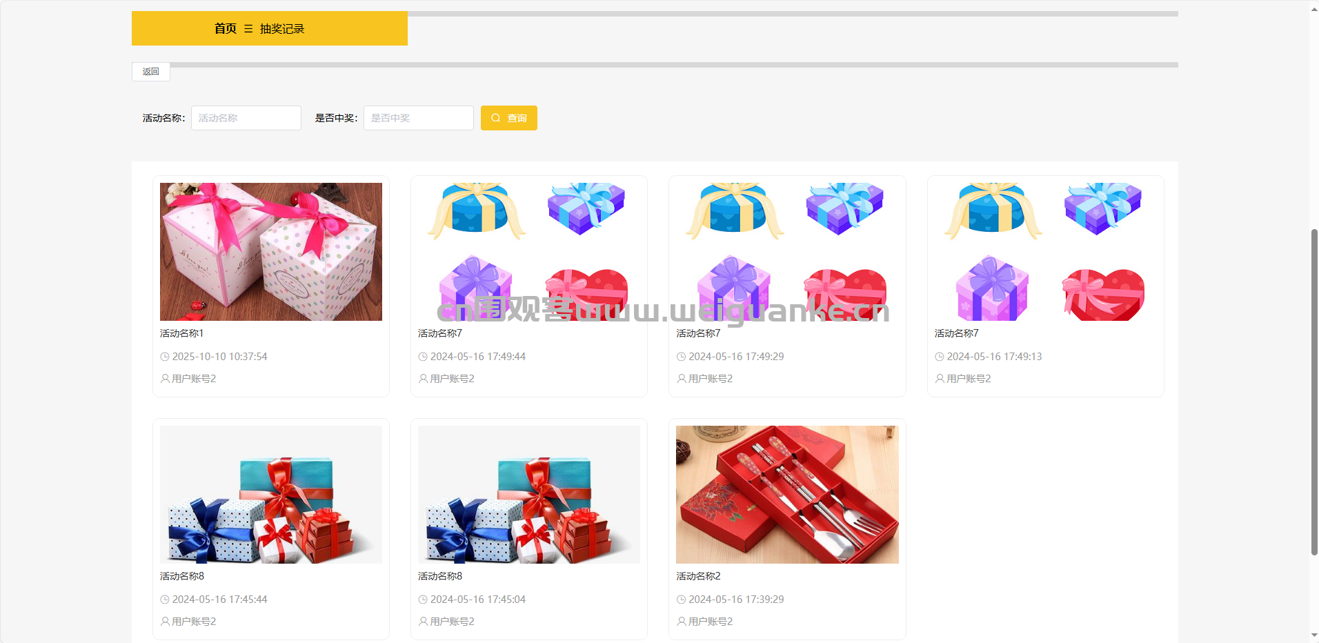 抽奖记录:查询本人历史抽奖结果与奖品状态。