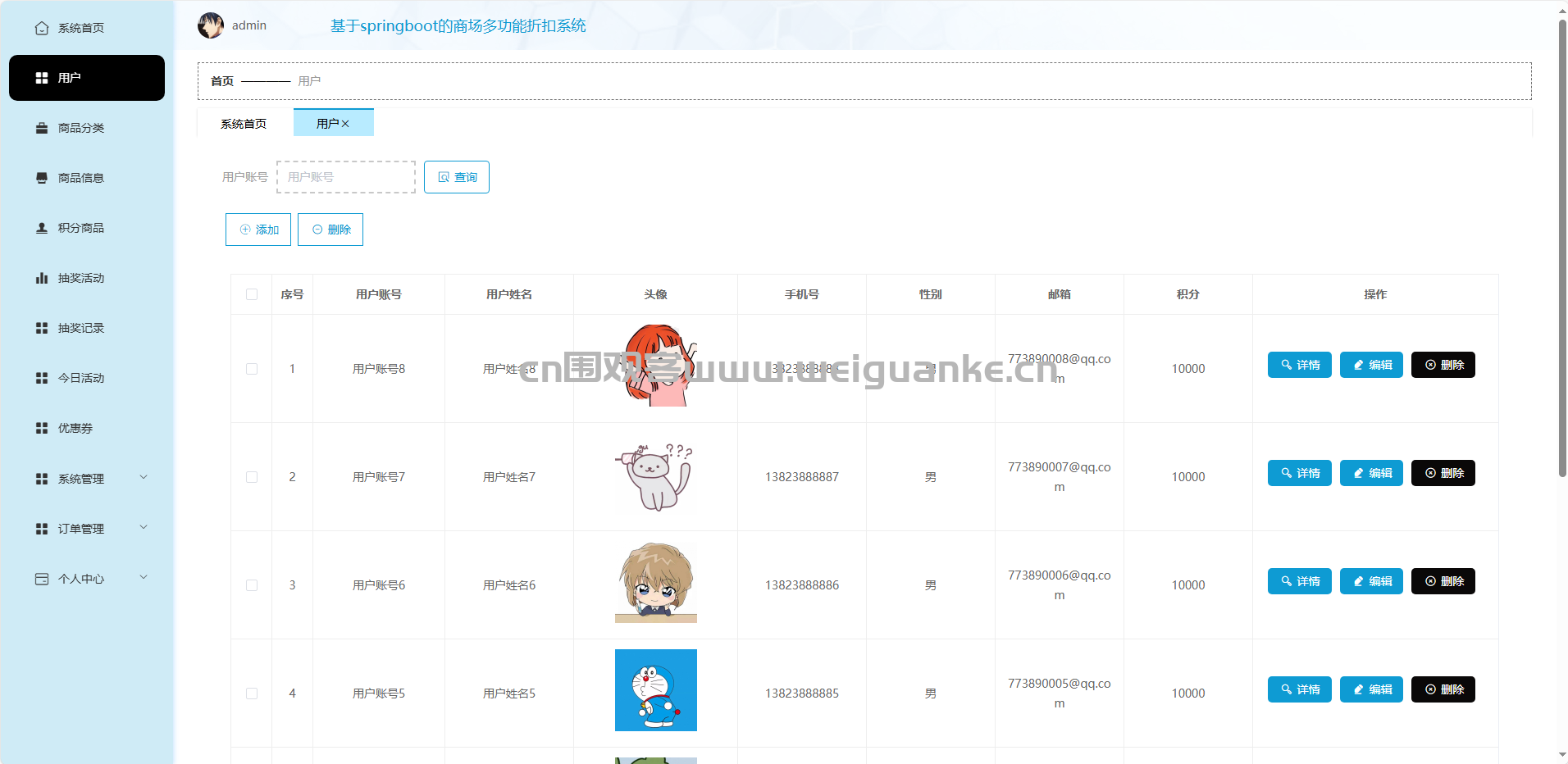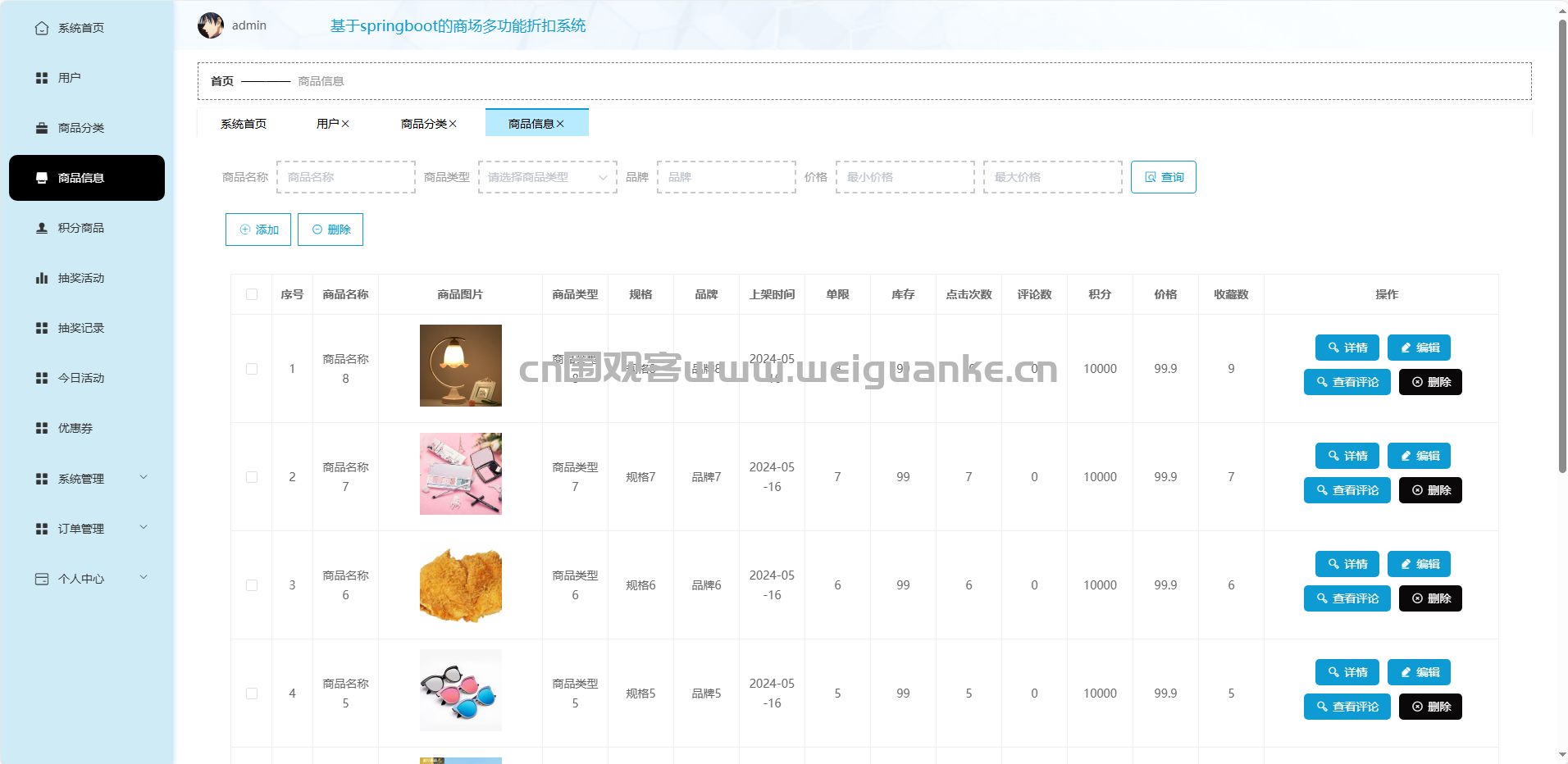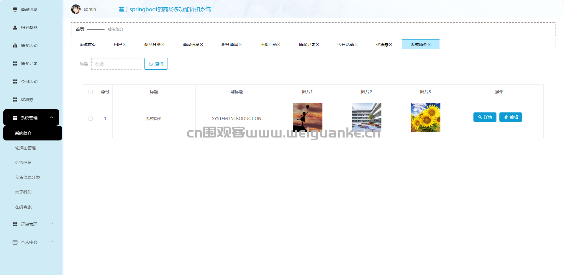 项目描述 基于springboot + vue的商场多功能折扣系统