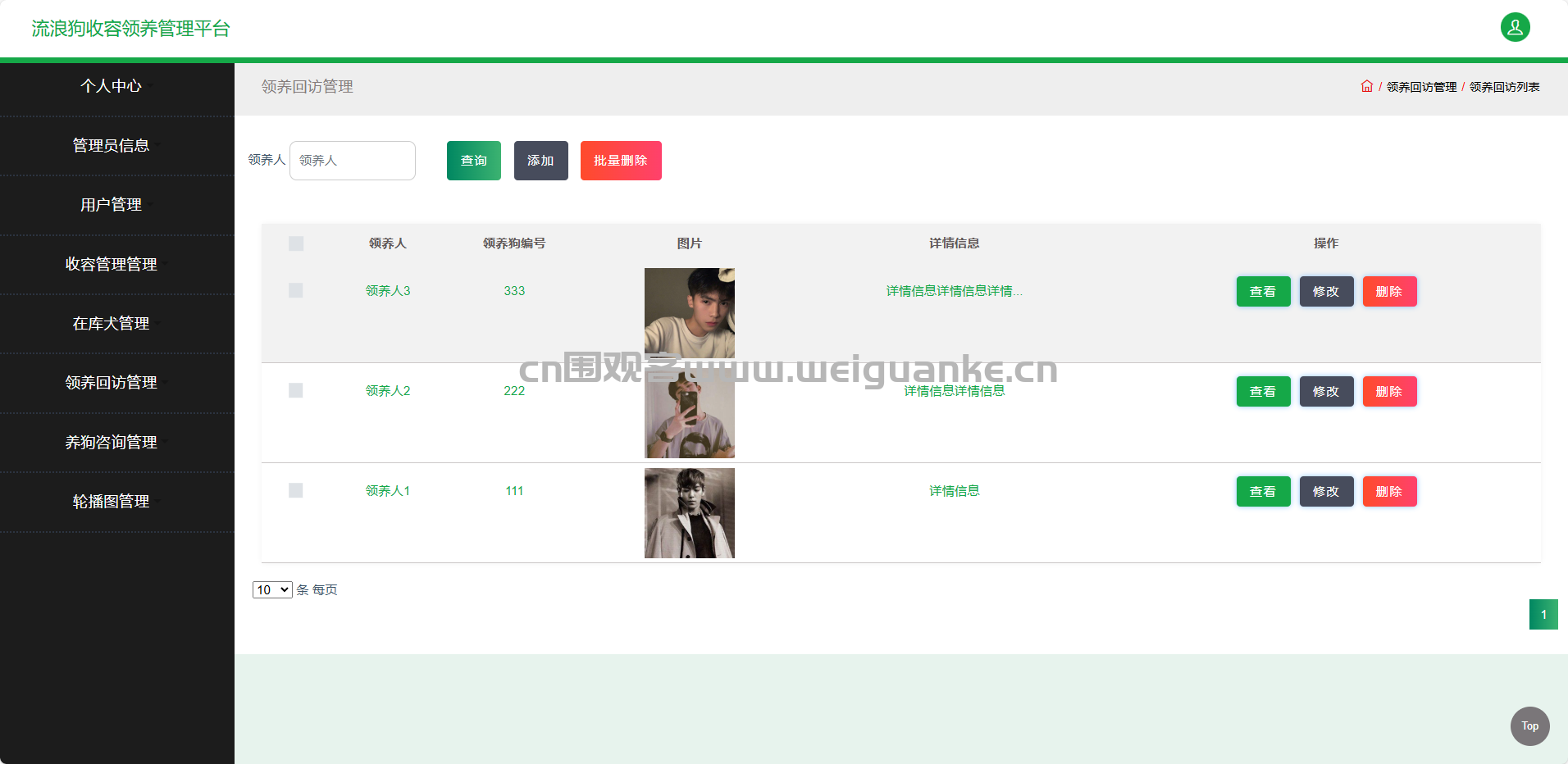 领养回访:公示已领养犬只的跟踪回访记录,见证它们的新生活。