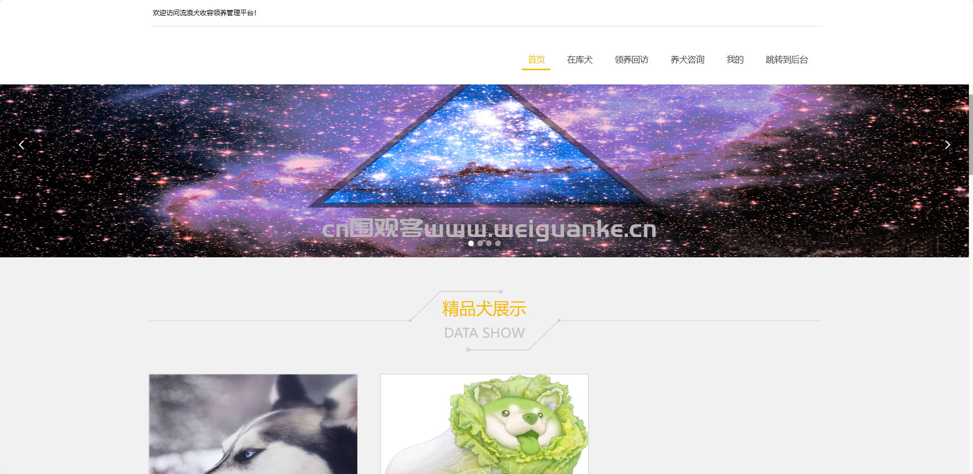 首页:一站纵览最新公告、热门待领养犬只与救助成果。