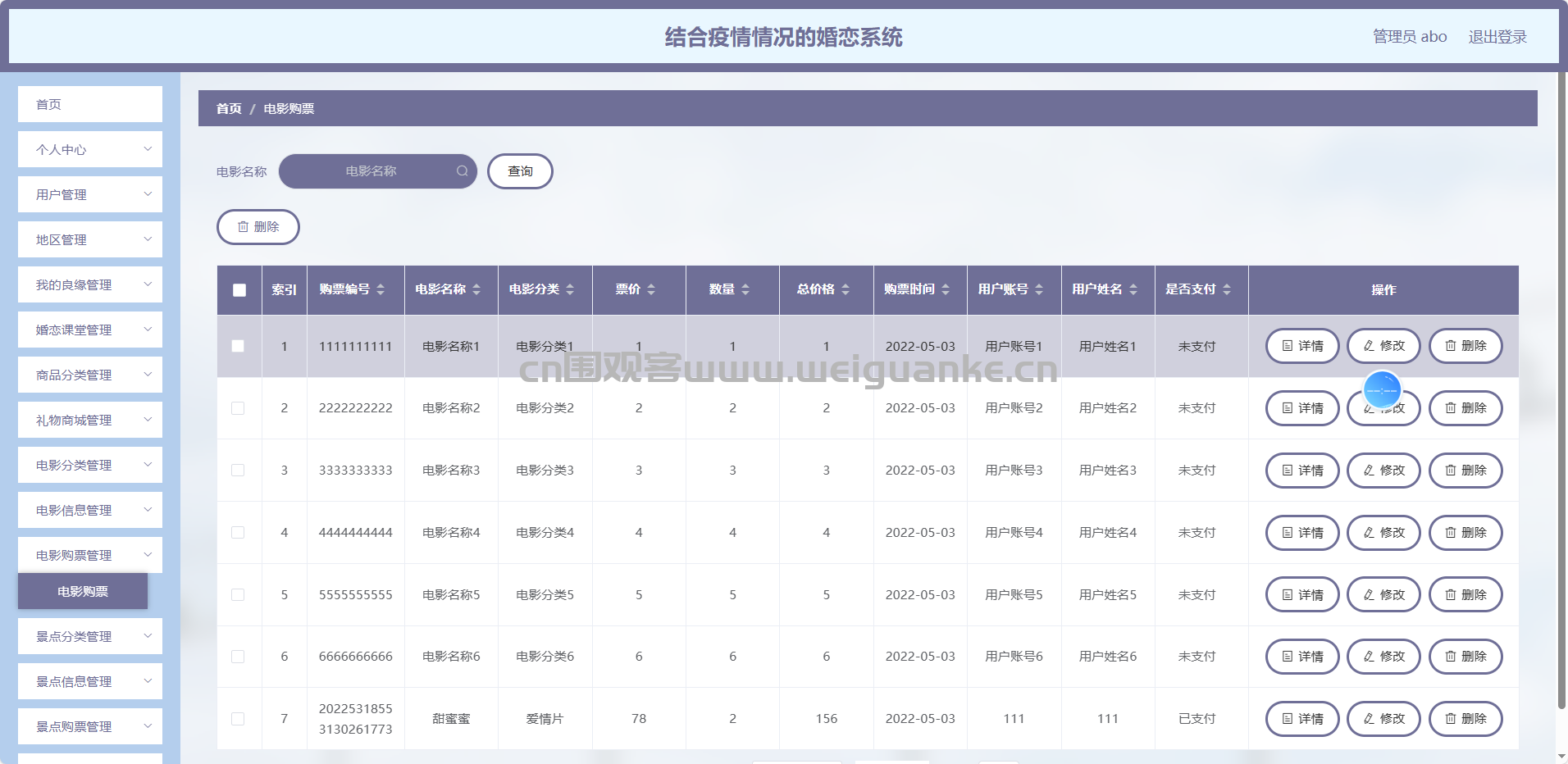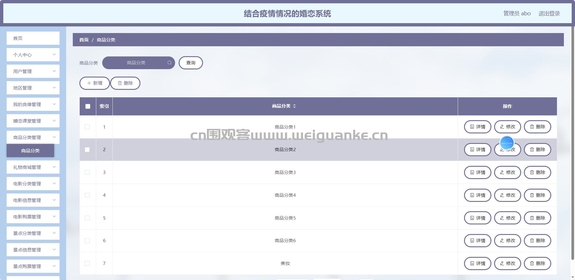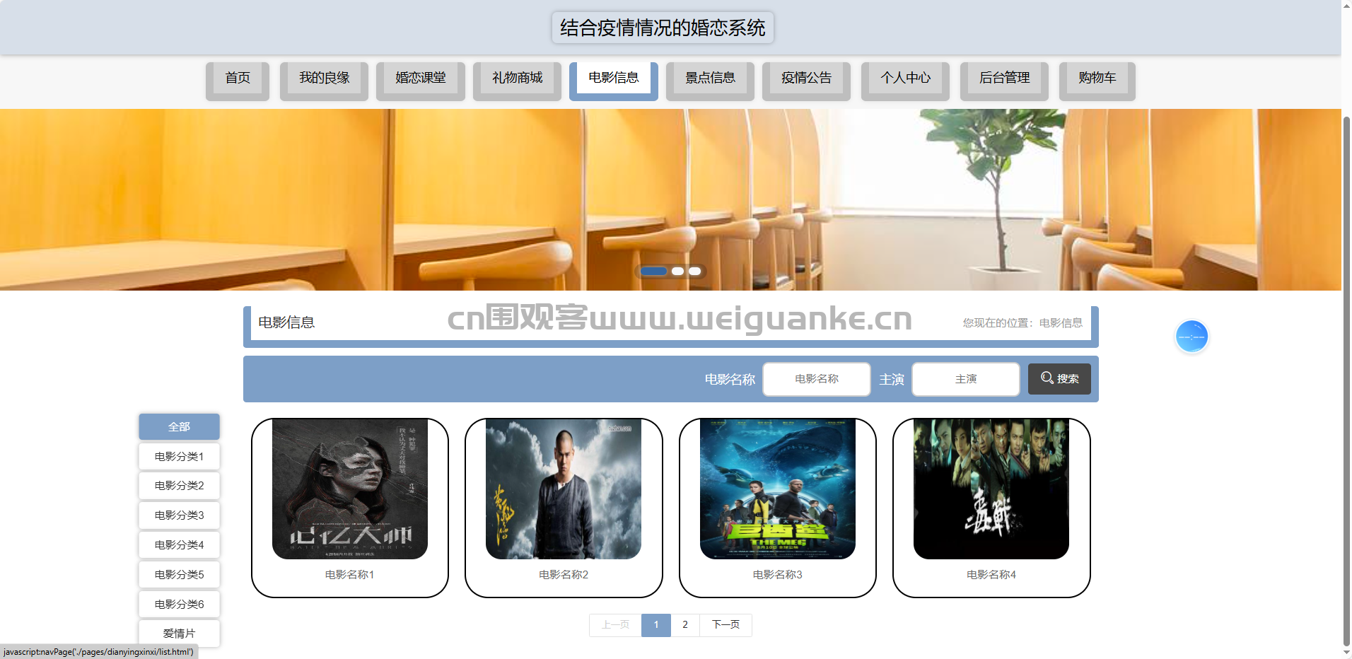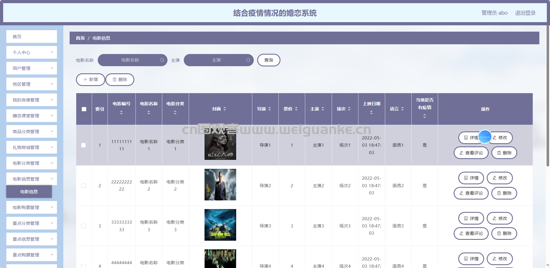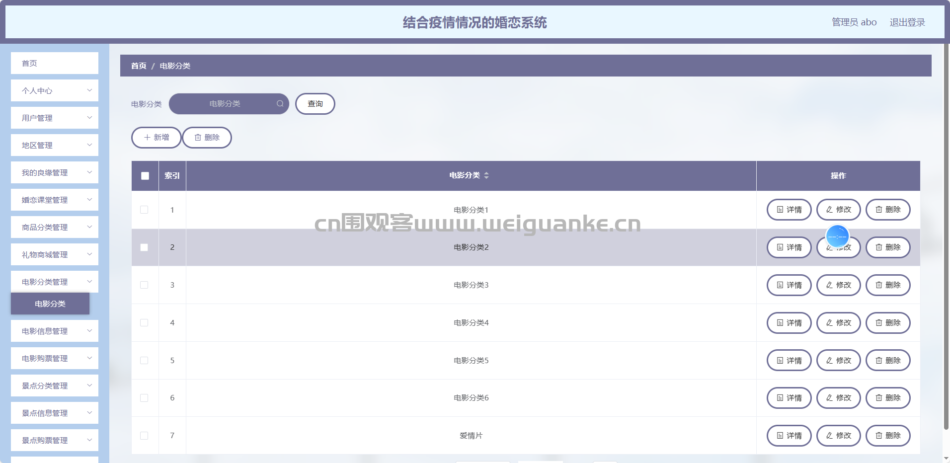 电影分类管理:维护影片类型与标签,为情侣/单身专场提供精准筛选维度。