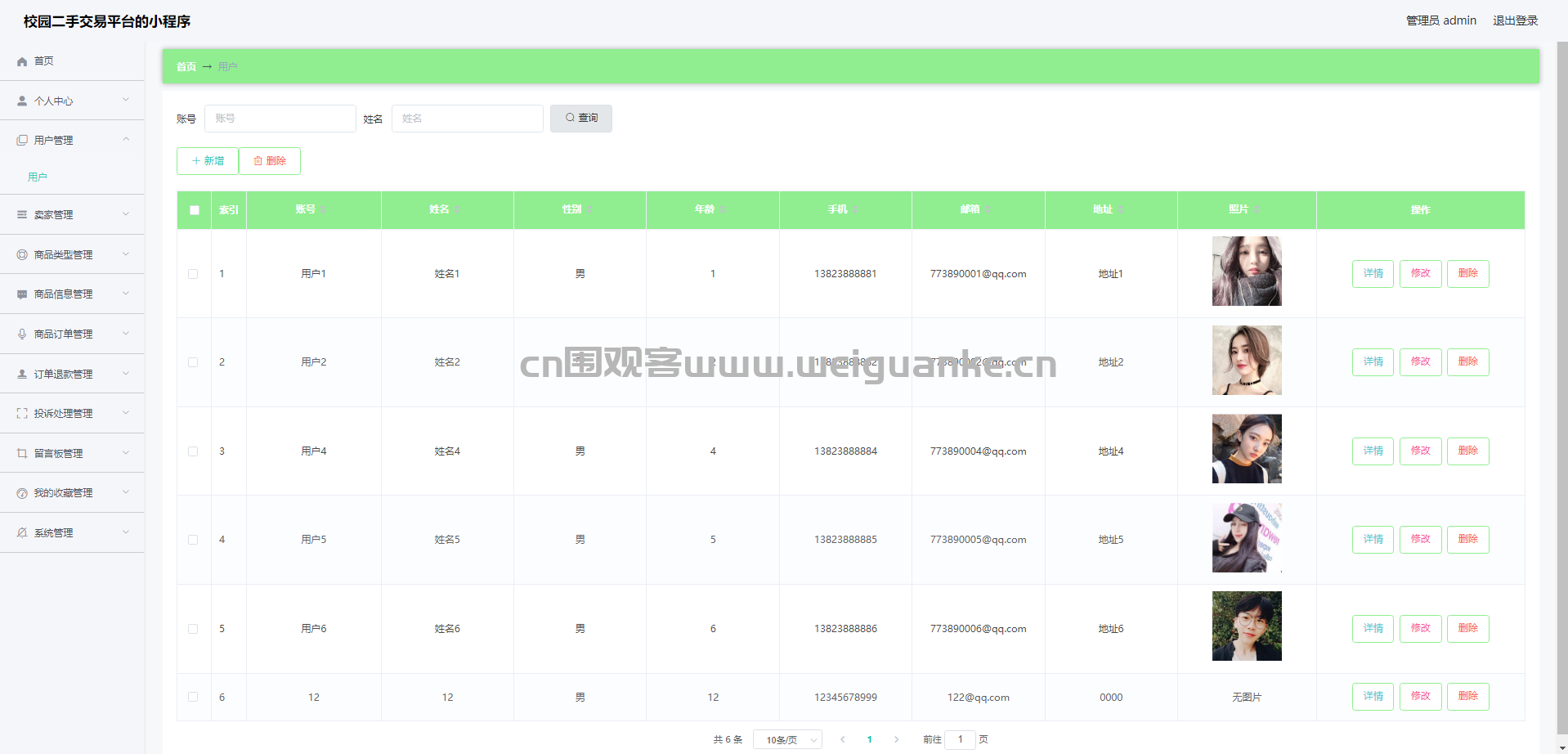2.用户管理:查看、添加、编辑、删除用户信息