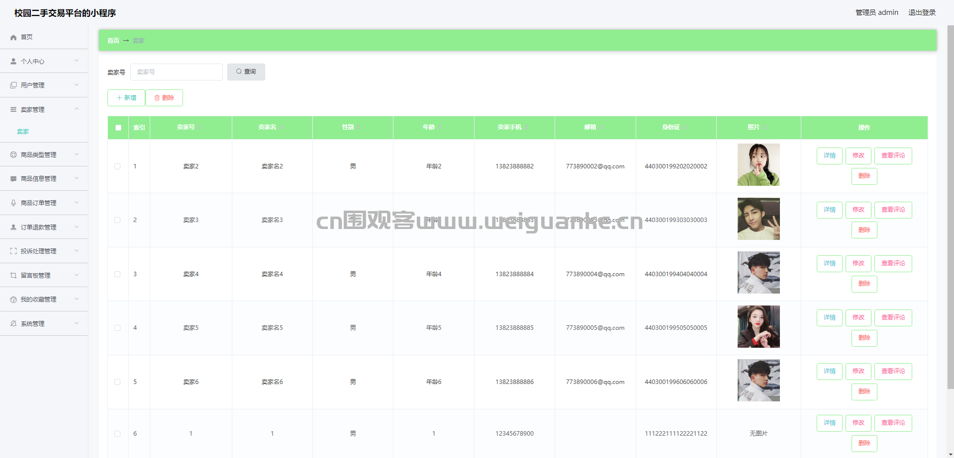 3.卖家管理:查看、添加、编辑、删除卖家信息