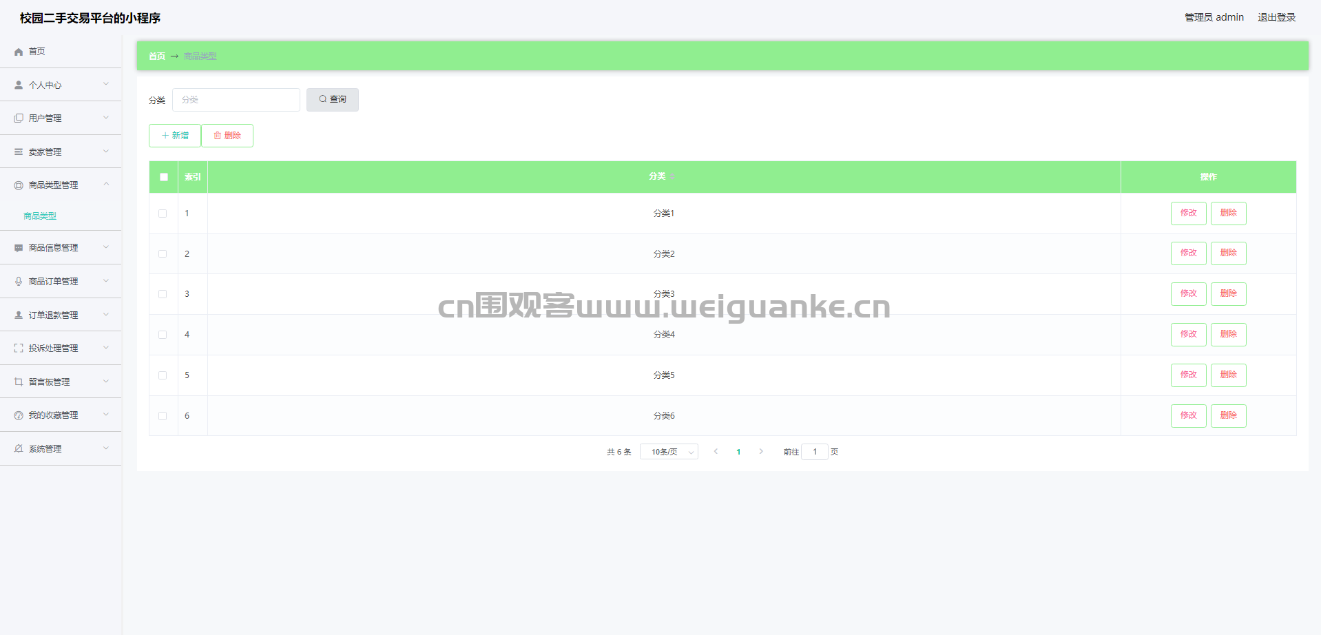 4.商品类型管理:查看、添加、编辑、删除类型信息