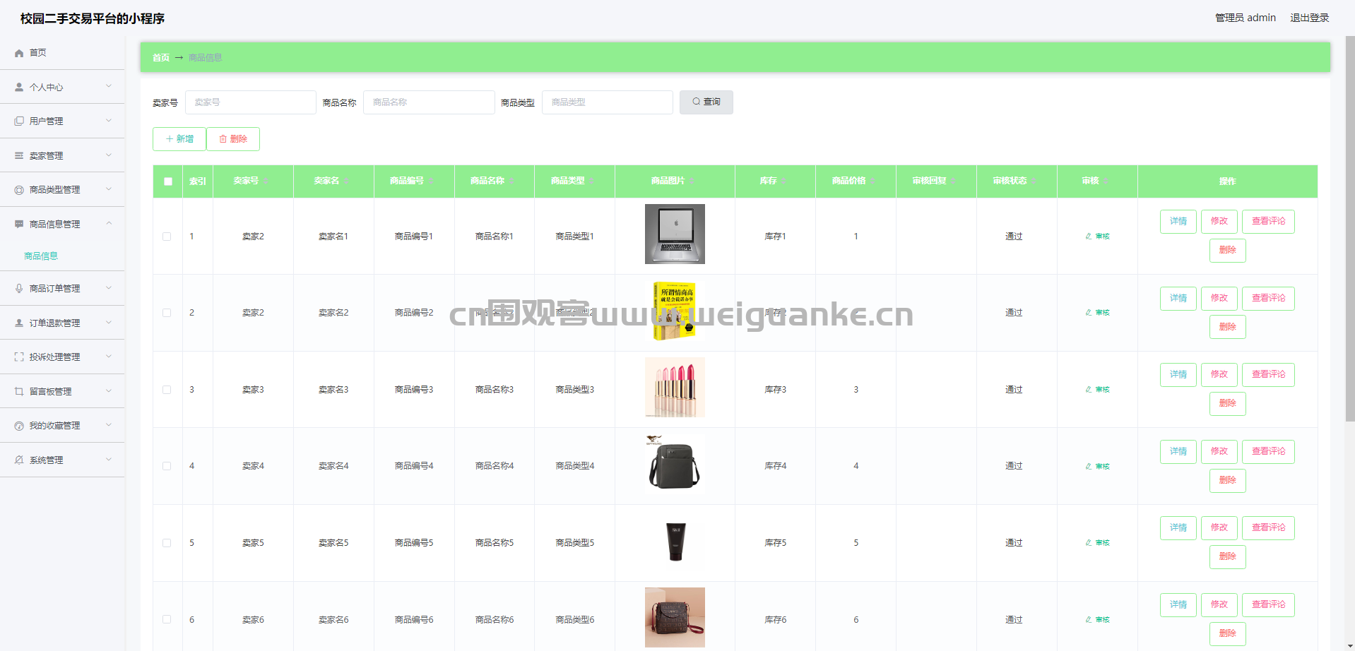 5.商品信息管理:查看、添加、审核、编辑、删除商品信息