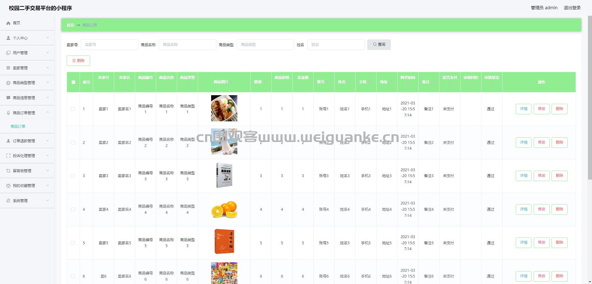 6.商品订单管理:查看、审核、编辑、删除商品订单信息
