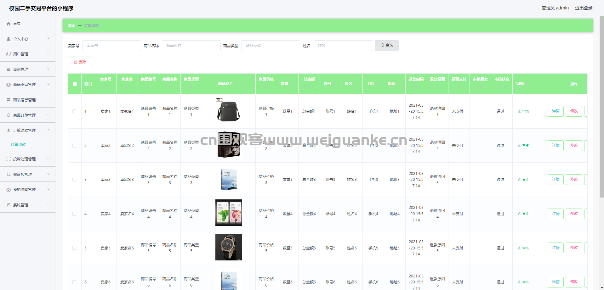7.订单退款管理:查看、审核、编辑、删除订单退款信息