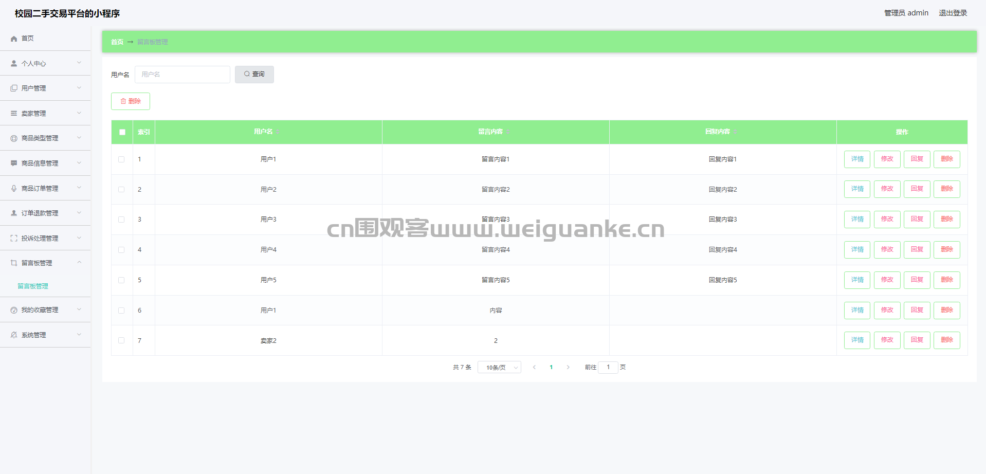 9.留言板管理:查看、回复、编辑、删除留言板信息