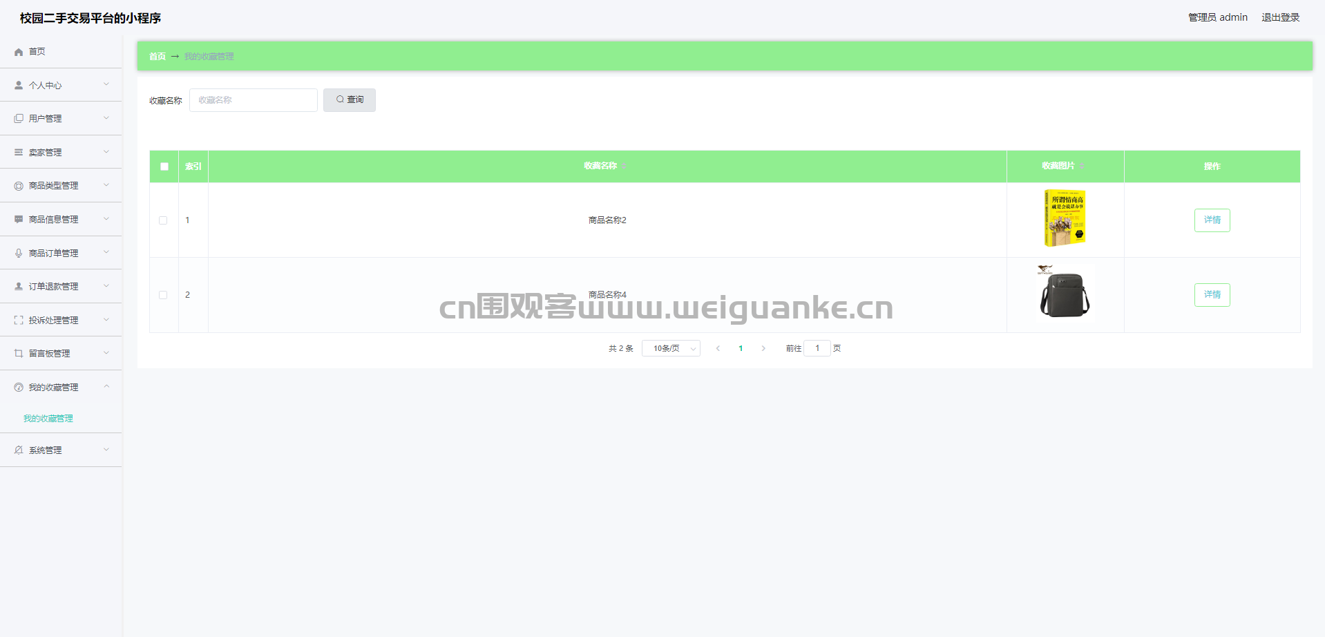 10.我的收藏管理:查看收藏信息