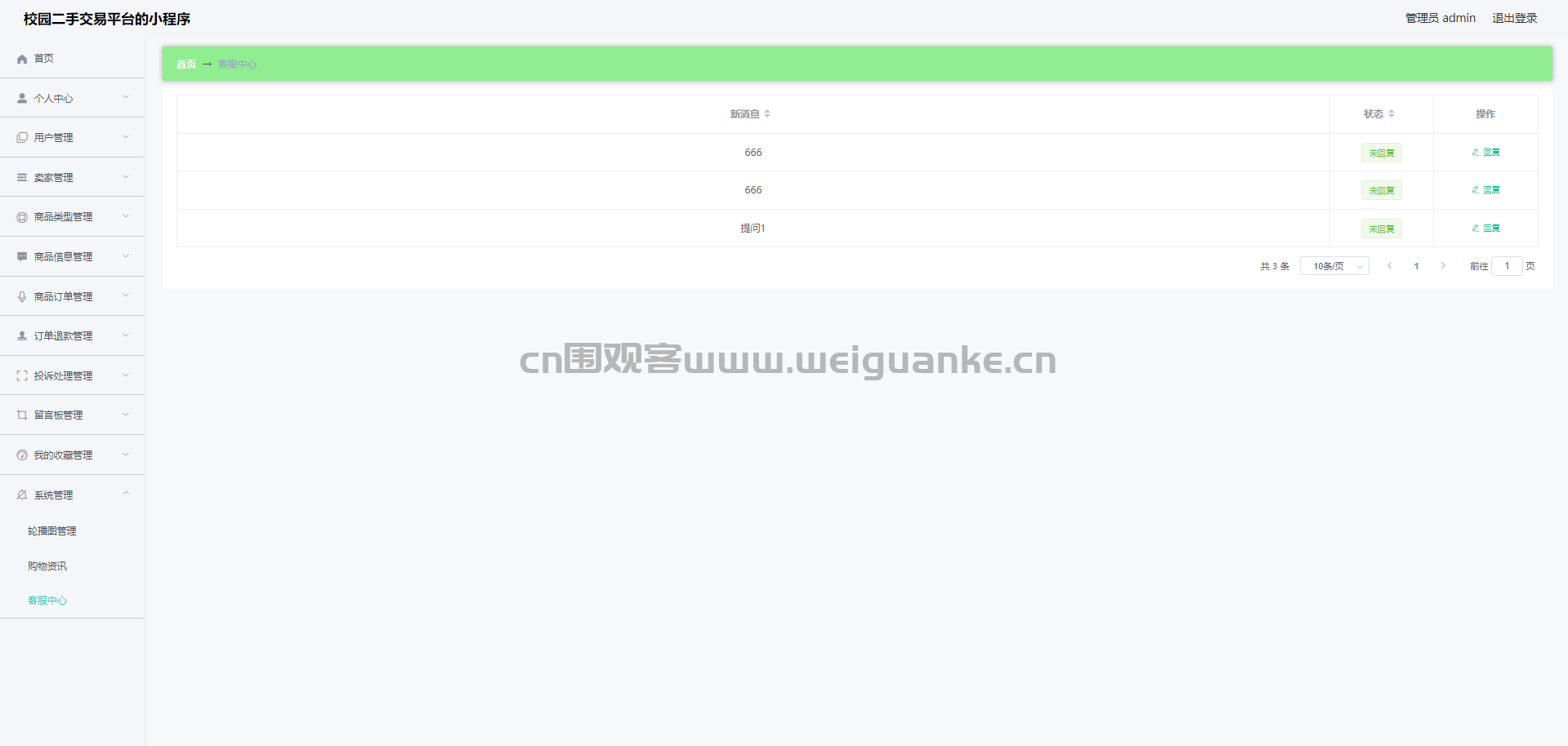 11.客服中心管理:查看、回复客服信息
