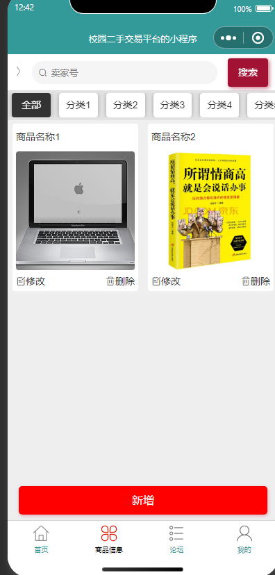 2.商品信息:查看、添加、编辑、删除商品信息