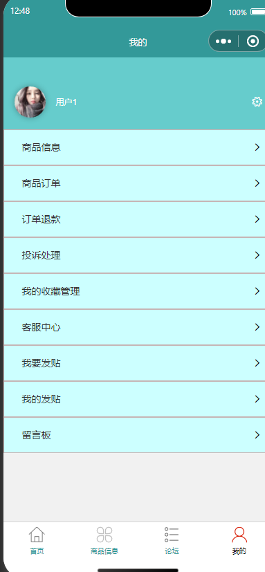 1.个人中心:查看和编辑个人信息,修改登录密码。管理类型,订单,退款,收藏,客服,论坛,留言板信息。