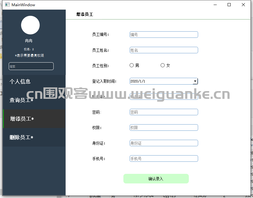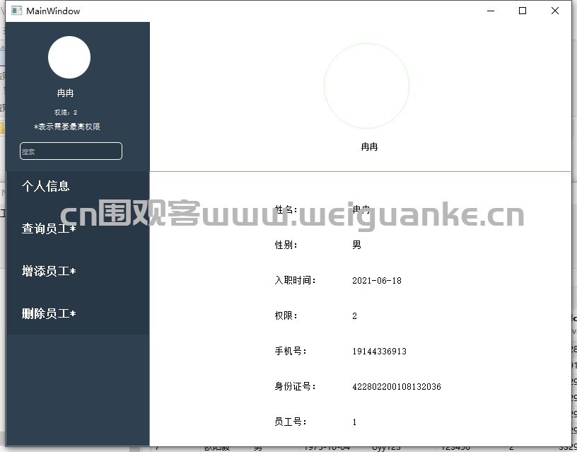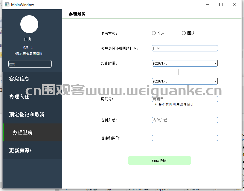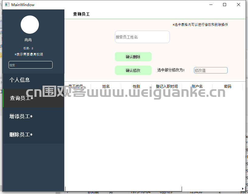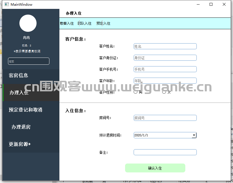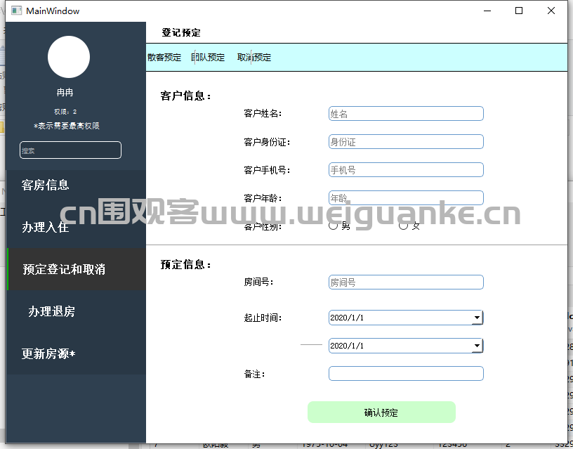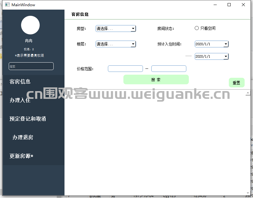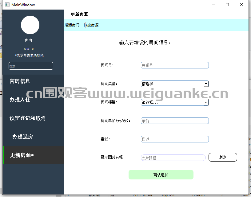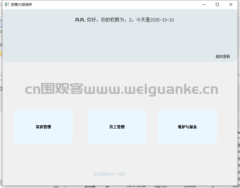 zhe, zhuo python 3天前 基于 PyQt5+ mysql8.0 架构酒店信息管理系统 项目描述 基于 PyQt5+ mysql8.0 架构酒店信息管理系统。 账号:ranxi 123456 项目功能 客房管理:客房信息管理 员工管理:员工信息管理 报表管理:报表数据信息管理 修改密码:修改用户密码 运行环境 开发环境 pycharm 运行环境 py3.8 项目技术 后端:PyQt5 数据库:MySQL 启动:main.py启动项目 以上系统源码经过技术整理与调试,确保能正常运行