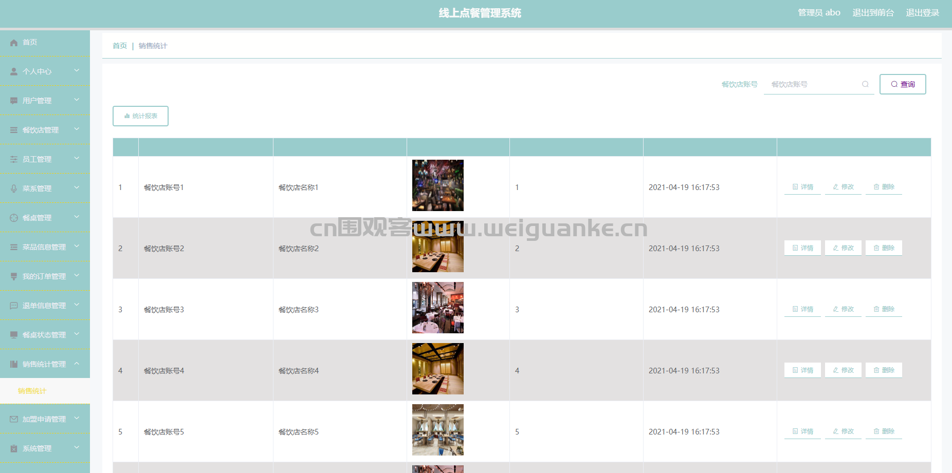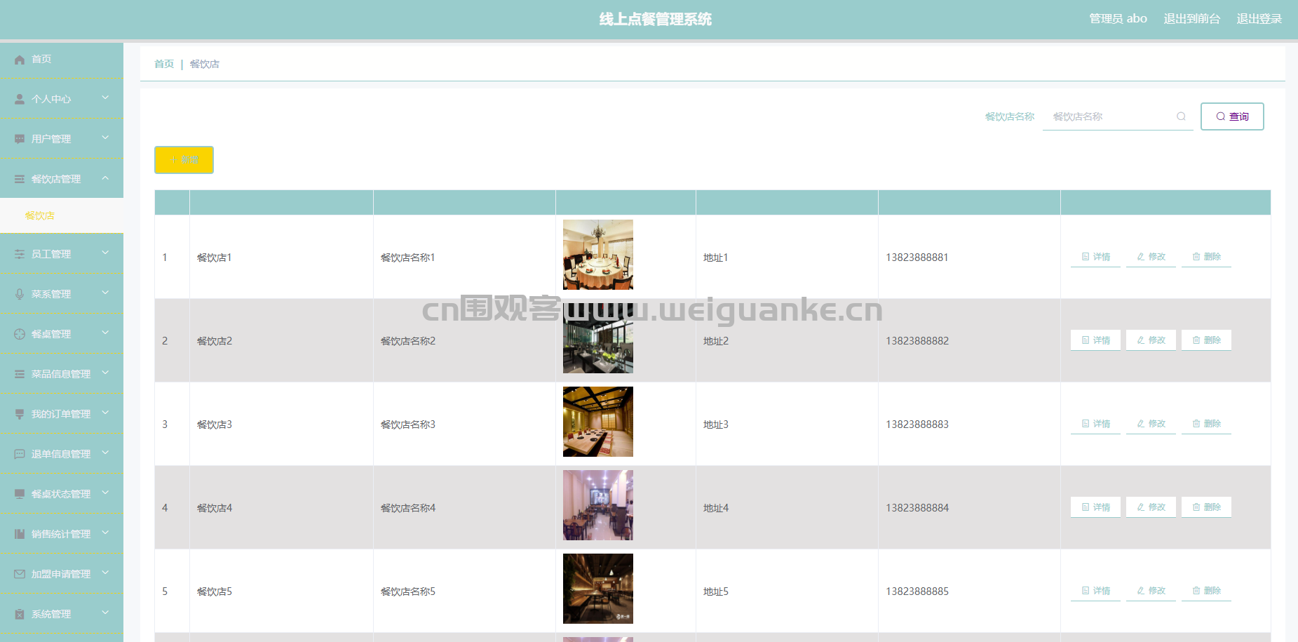 – 餐饮店列表:查看所有餐饮店的基本信息。