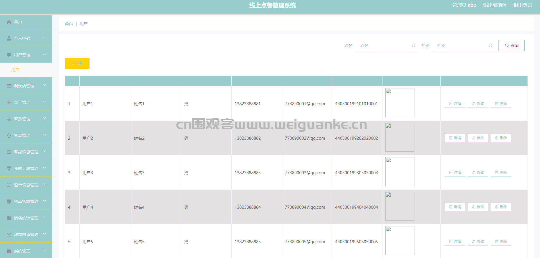 – 用户管理:管理系统的用户信息。