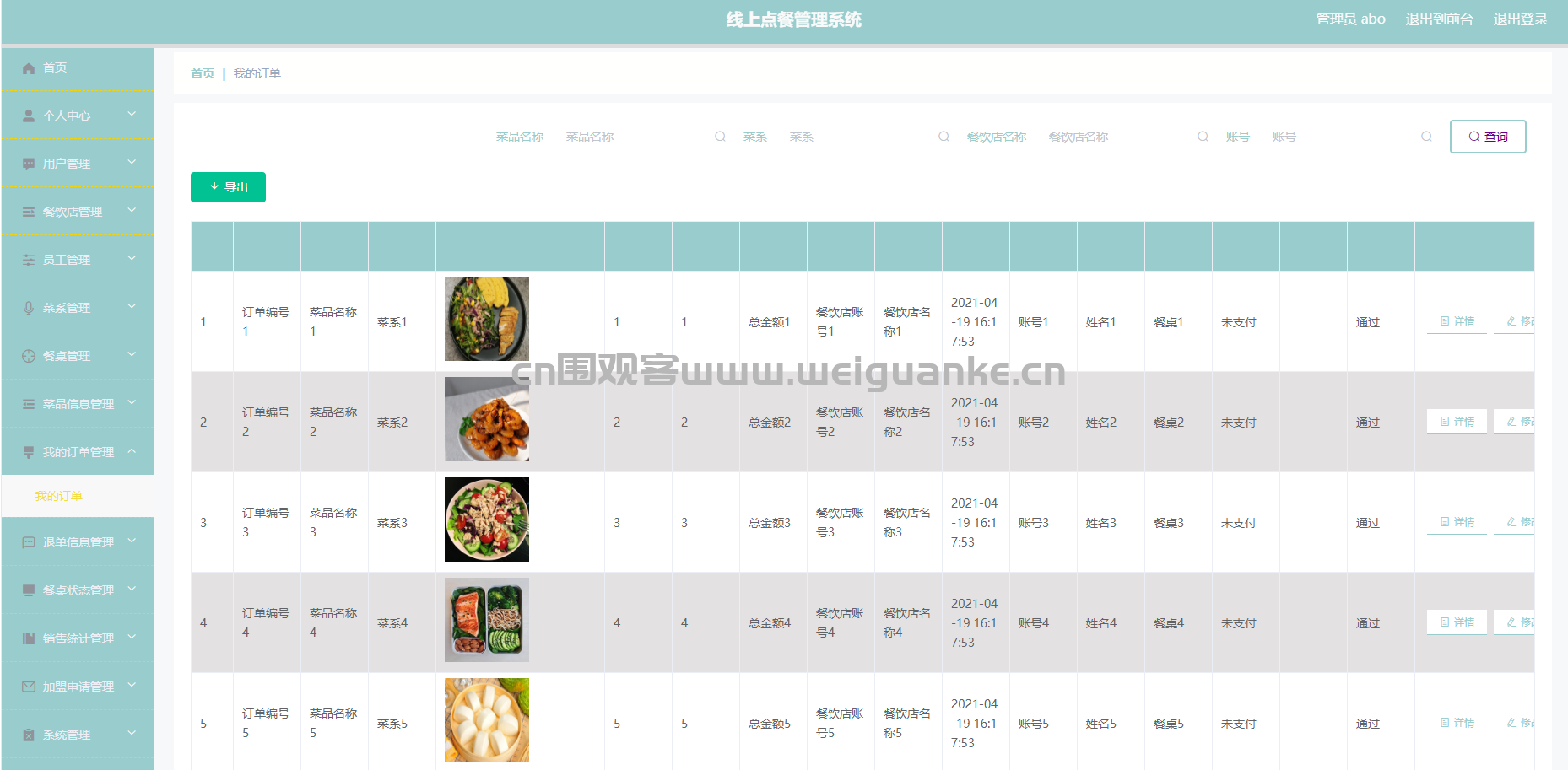 – 订单详情:查看单个订单的详细信息。