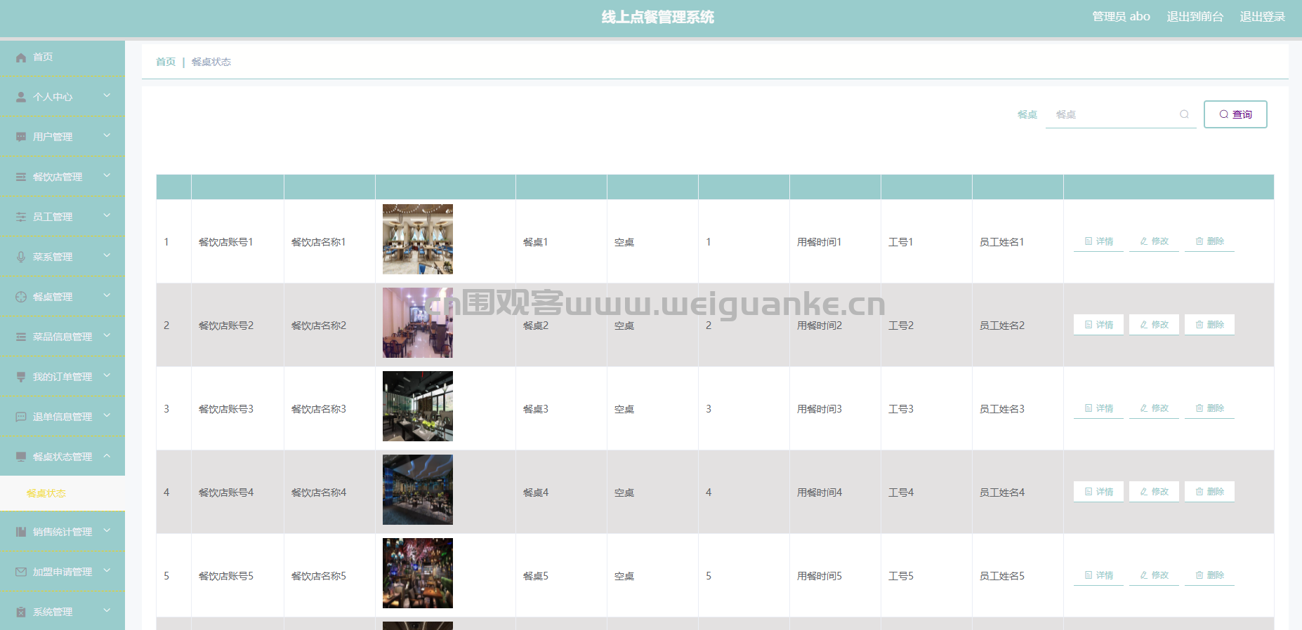 – 餐桌管理:管理餐厅的餐桌信息。