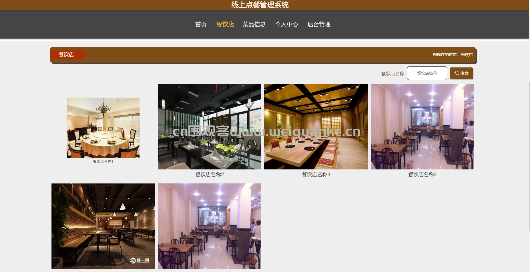– 餐饮店列表:展示所有餐饮店的基本信息。