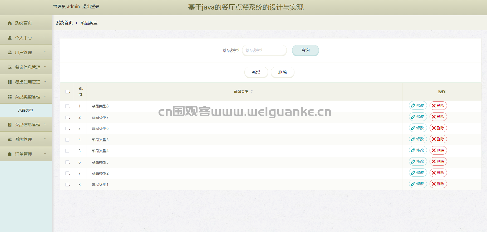 – 类型添加:管理员可以在此添加新的菜品类型。