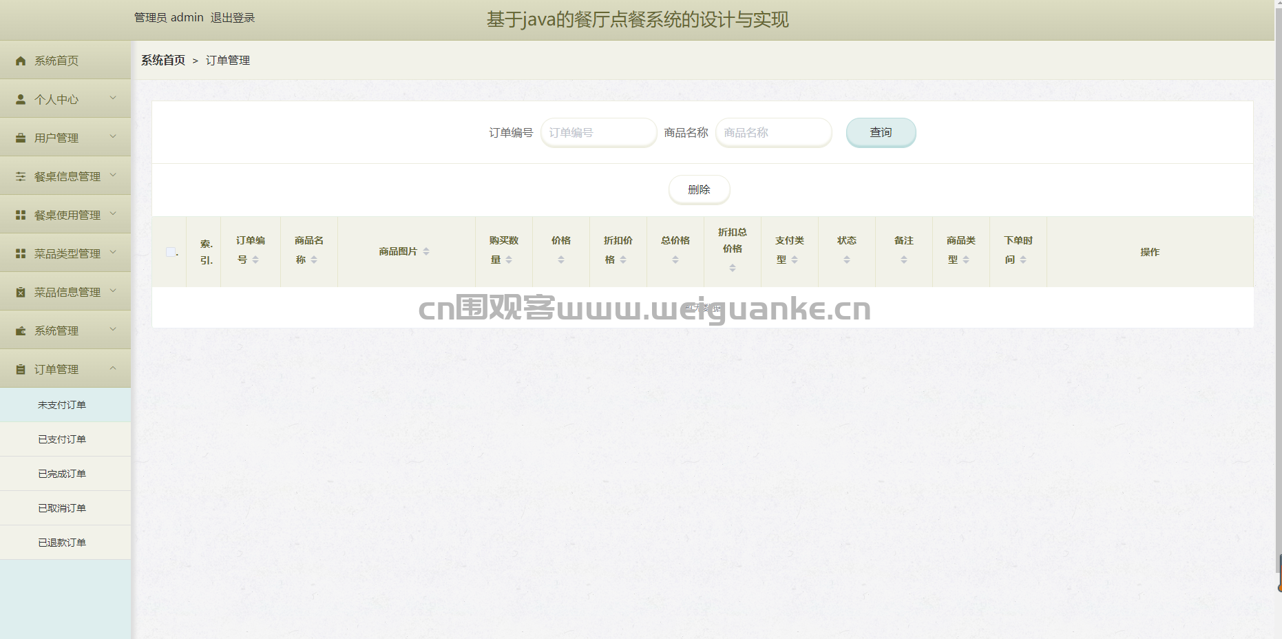 – 已支付订单:展示所有已支付的订单,管理员可以进行订单处理。