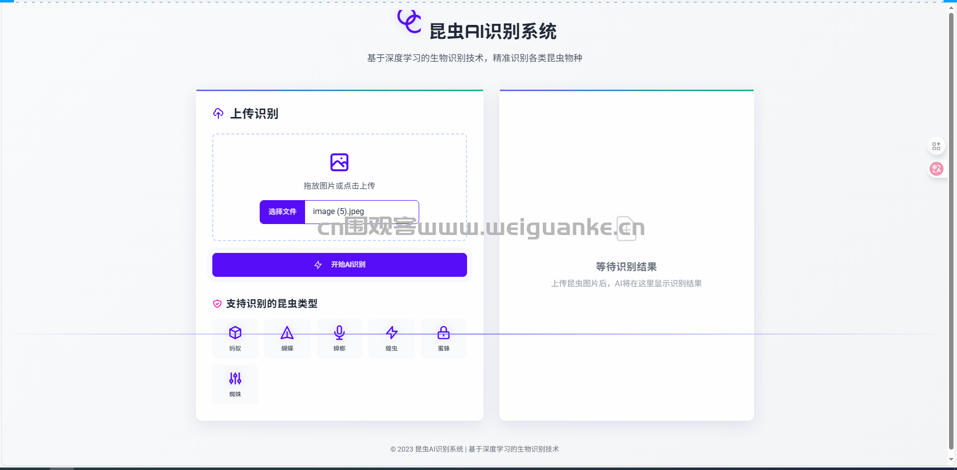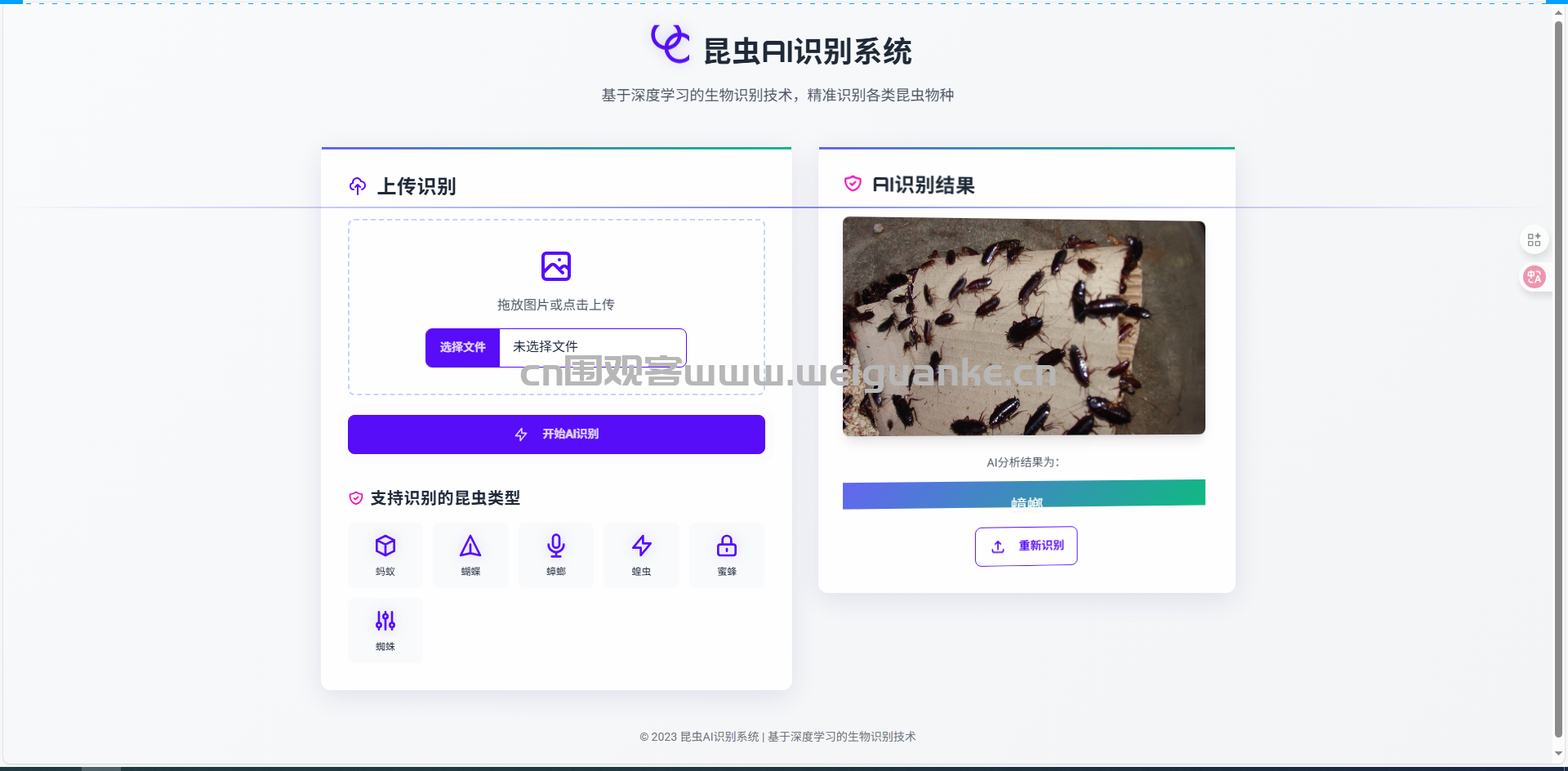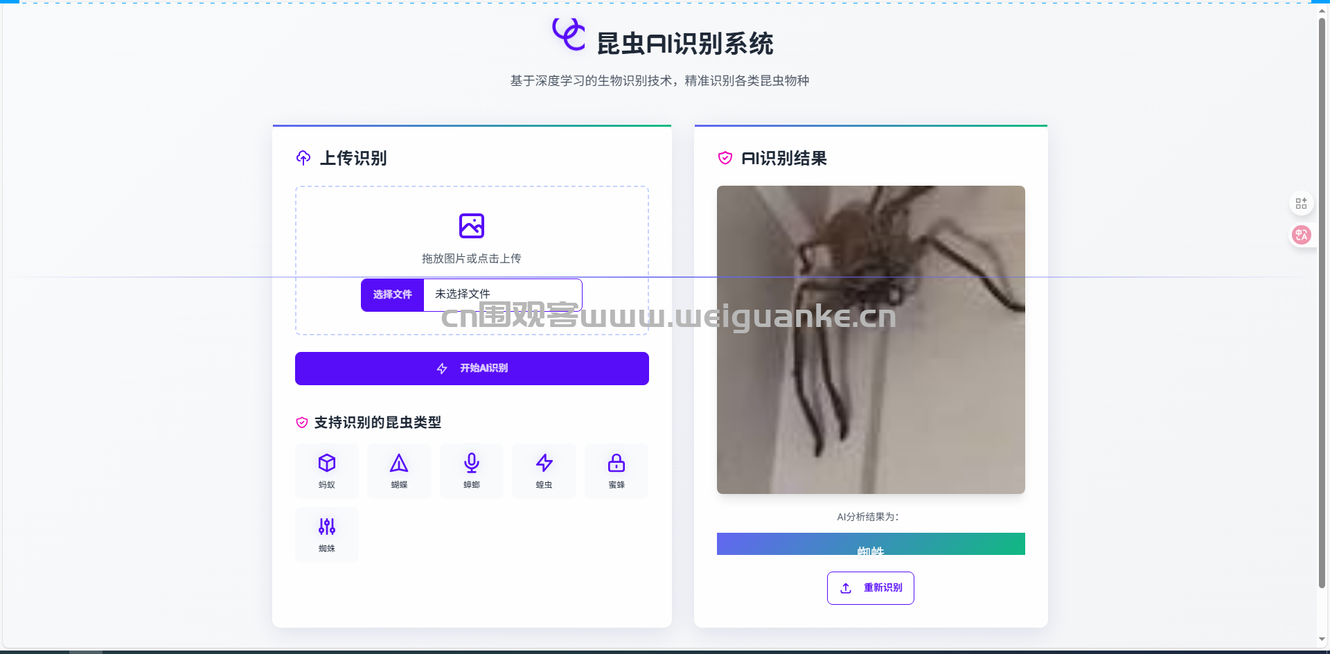 zhe, zhuo python 11小时前 基于CNN的昆虫AI识别系统 项目描述 基于CNN的昆虫AI识别系统 项目功能: 上传图片进行昆虫AI识别 运行环境 开发工具:PyCharm 运行环境:python3.8 此配置为本人调试所用,仅供参考 项目技术: 后端:flask CNN 以上系统源码经过技术整理与调试,确保能正常运行