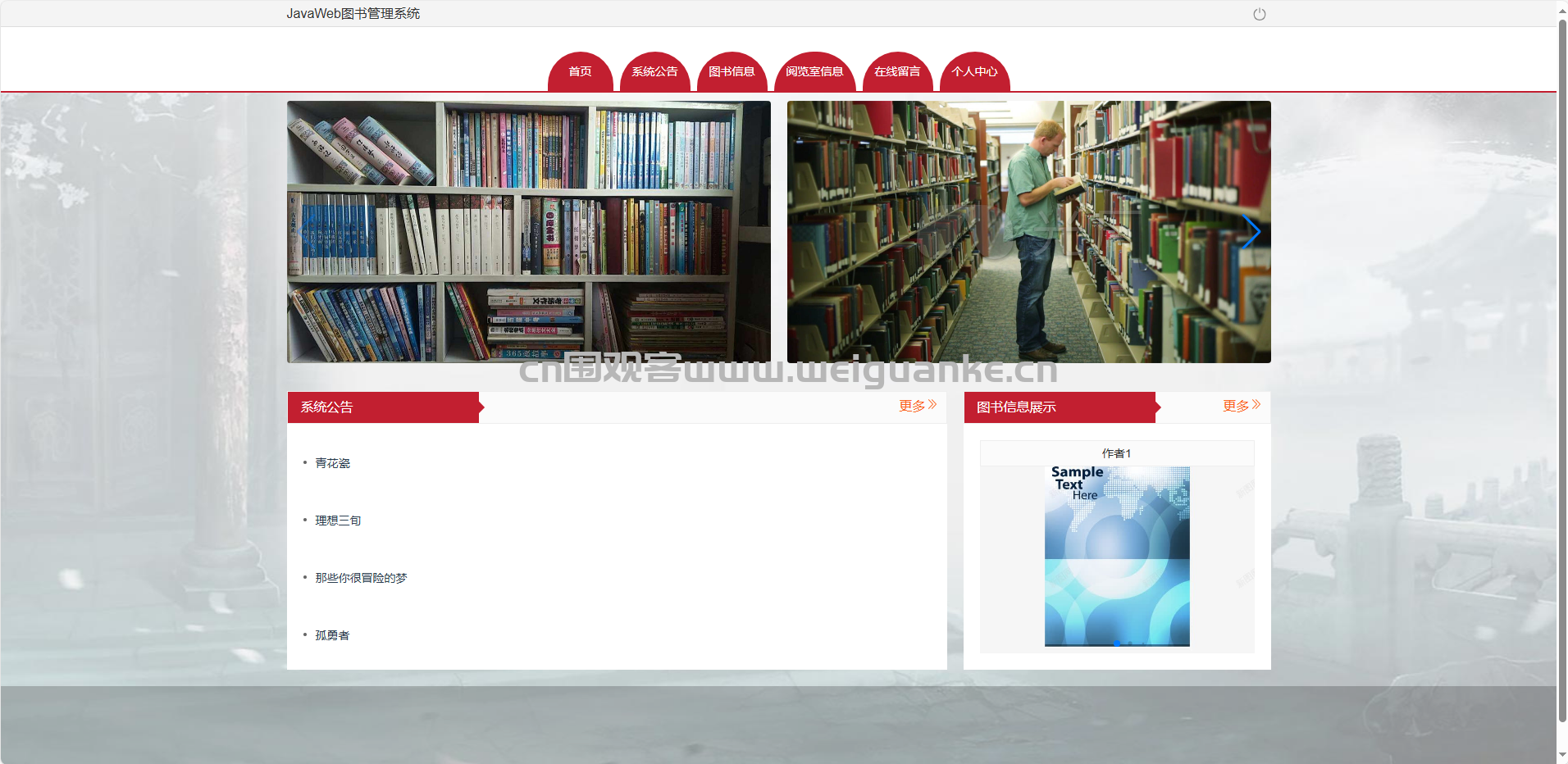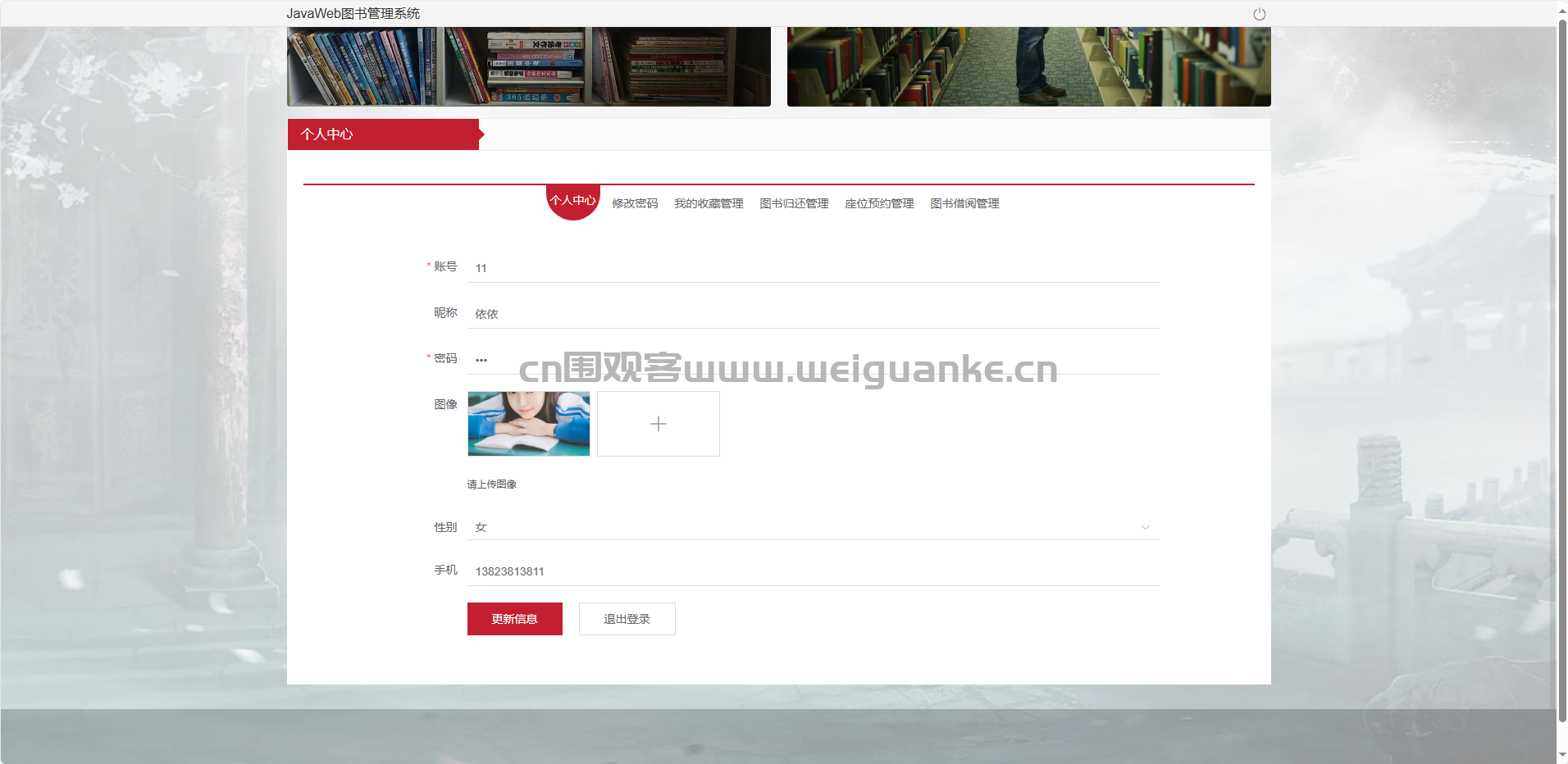 个人中心:查看/修改本人资料与借阅状态。